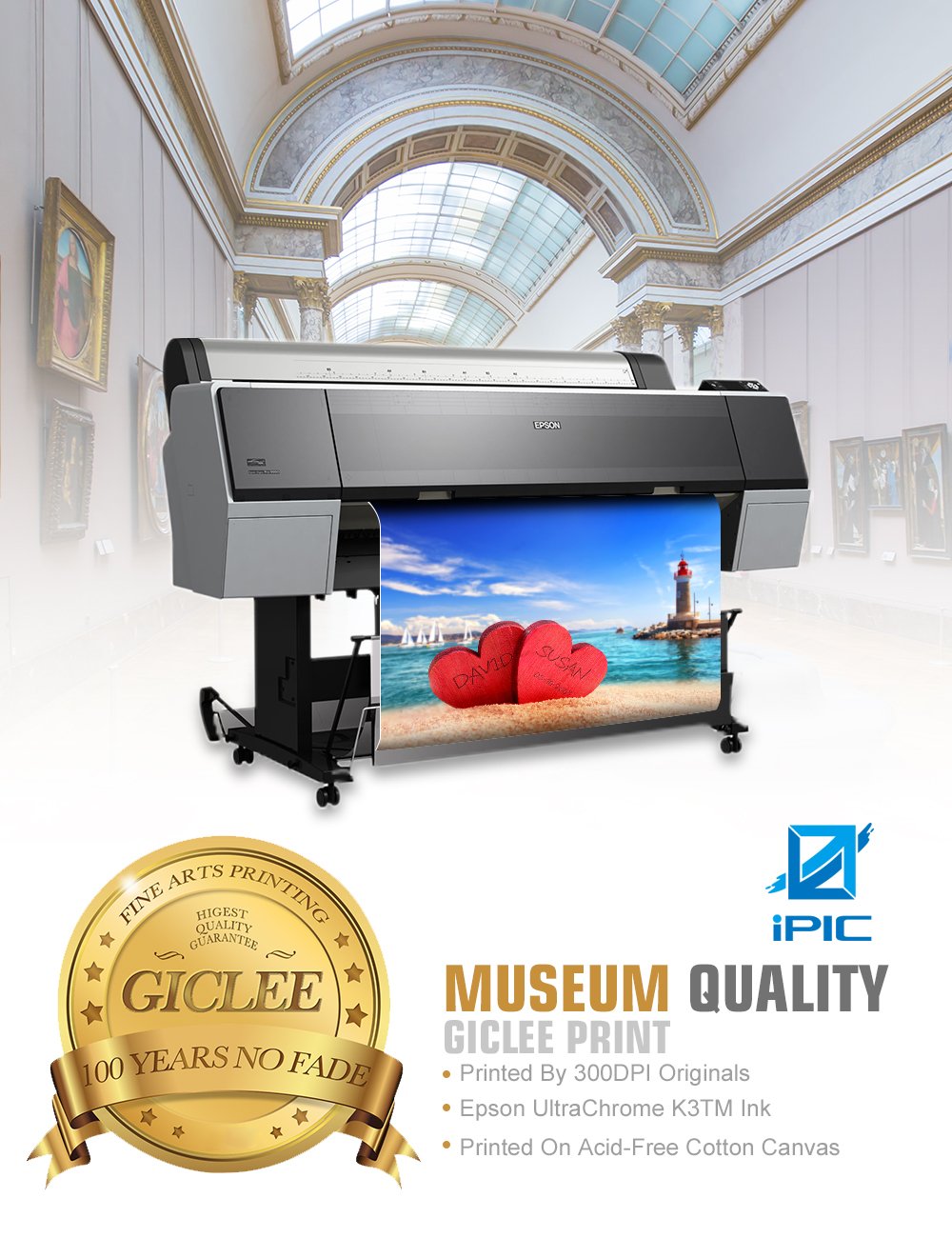 Ipic - Beach Lovers, Personalized Artwork With Names And Date On, Customized Gift For Anniversary,Wedding,Birthday And Holidays.