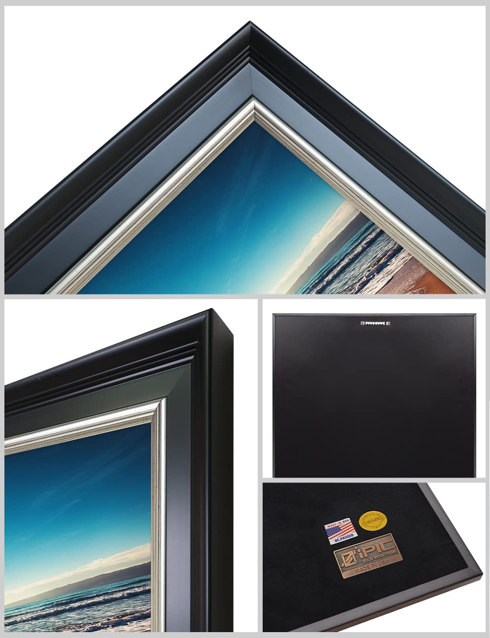 • Q: What kind of framing does this wall art have? A: The artwork features a lustrous black solid wood frame with a satin finish and speckled silver slip detailing.