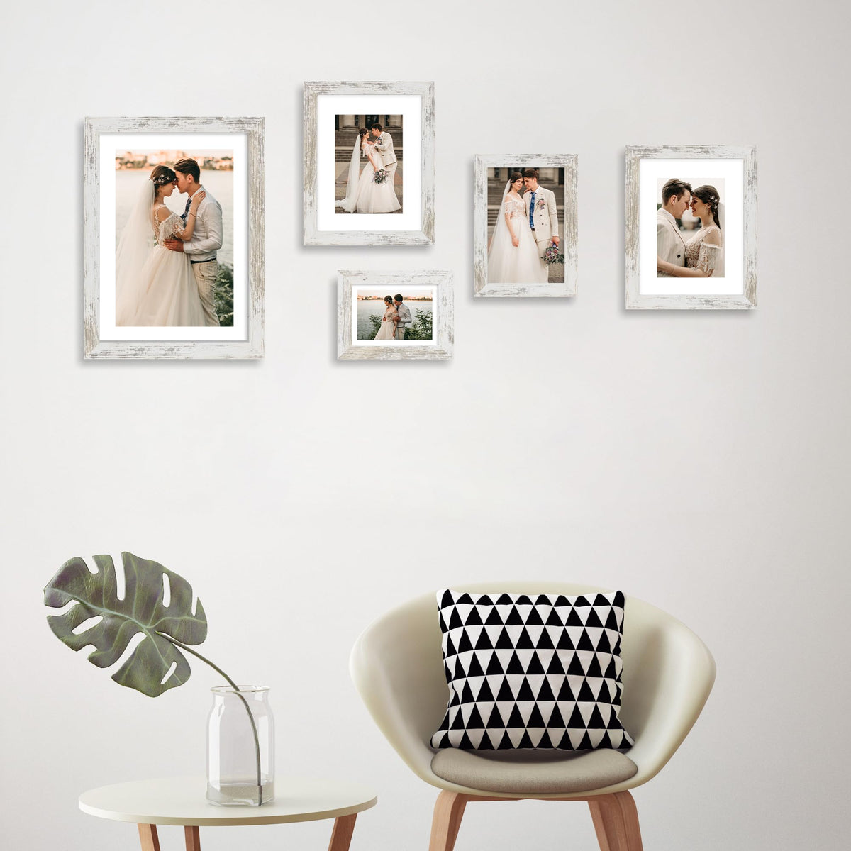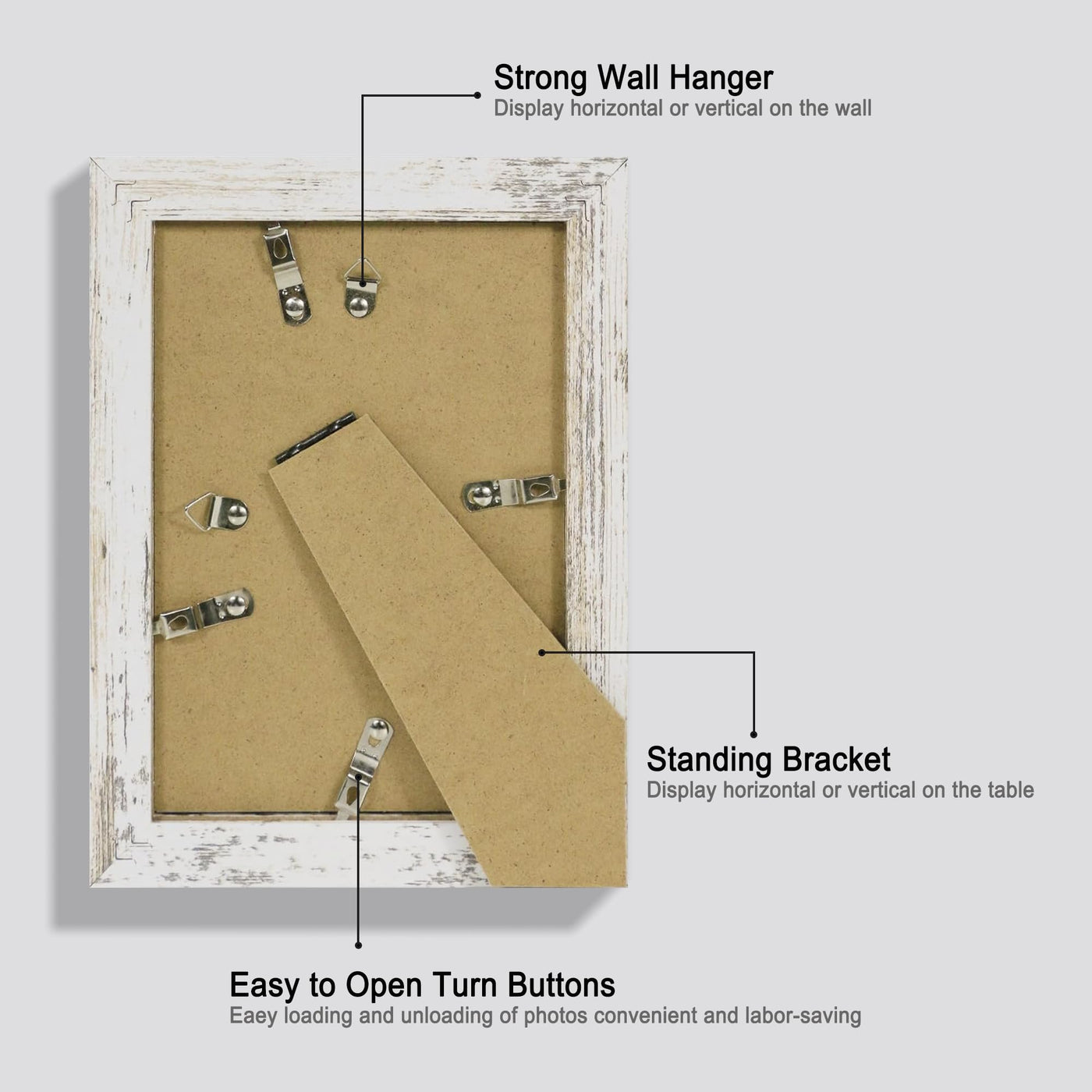 iRahmen 5x7 Picture Frame Set of 2 with HD Glass, Distressed White Wood Photo Frames Display 4x6 Picture with Mat or 5 x 7 Witho