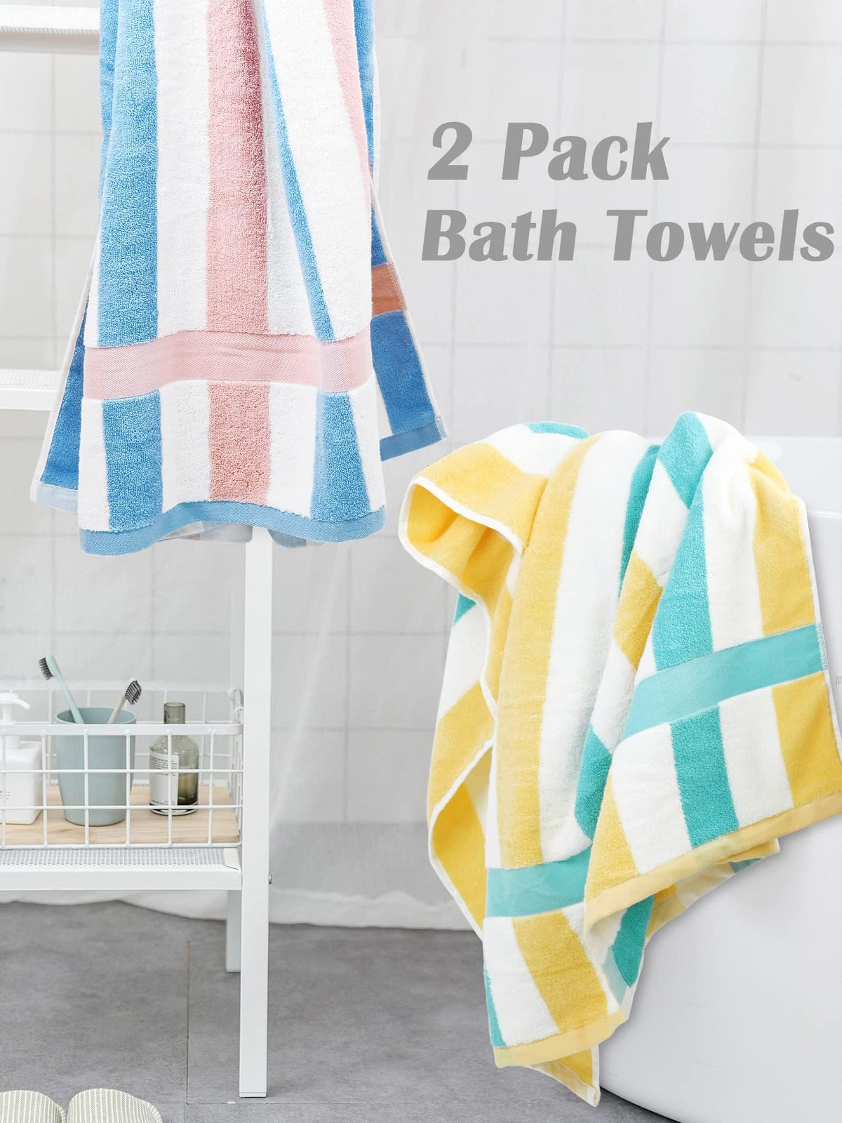 Jacquotha 100% Cotton Bath Towels Set Of 2, Highly Absorbent Towels For Bathroom, Beach, Pool, Large Bathroom Towels Stripe 55 X