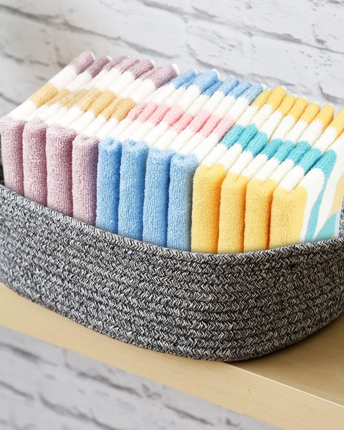 - Q: How many washcloths come in a pack? A: The pack includes 12 washcloths in three different color combinations.