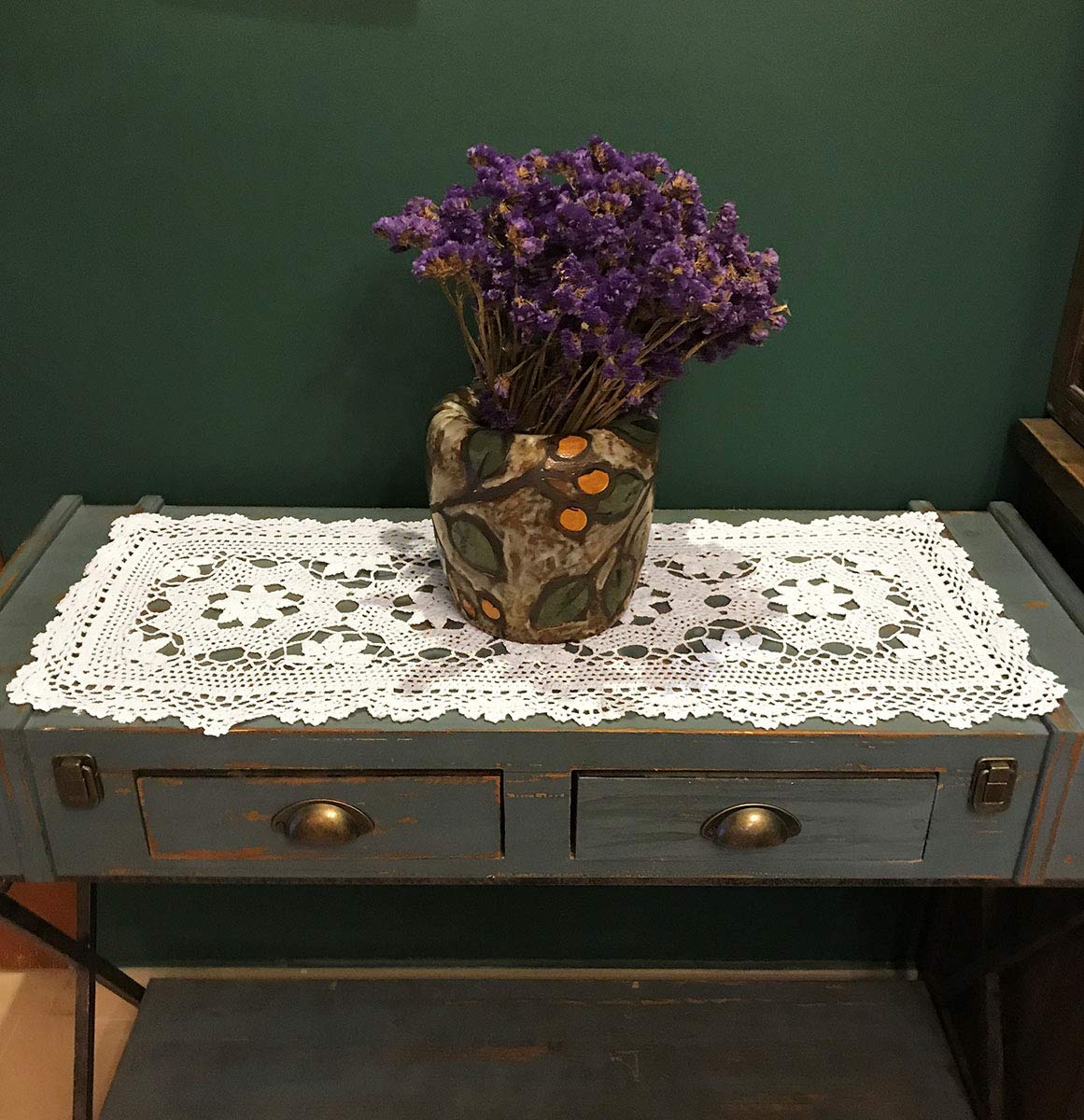 • Q: What material is the Janef White Handmade Crochet Cotton Table Runner made of? A: The table runner is made from pure cotton, providing a soft and comfortable feel.