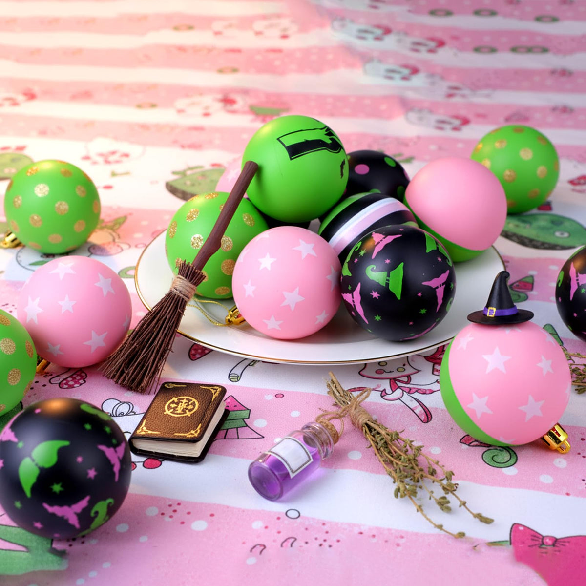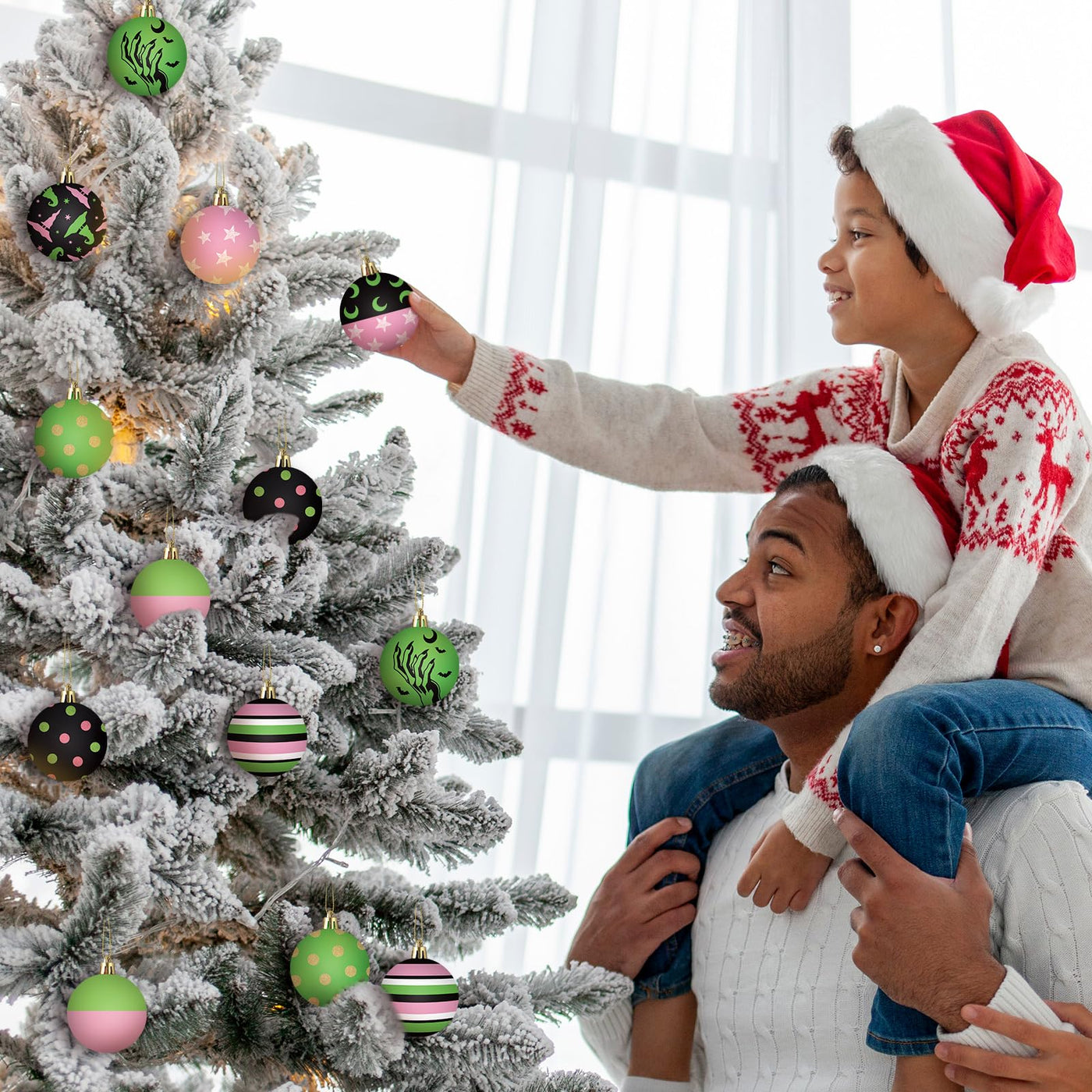 Janinka 24 Pcs Christmas Tree Ball Ornaments 2.4 Inch Witch Pink and Green Plastic Hanging Ornaments Pendants Baubles for Xmas T