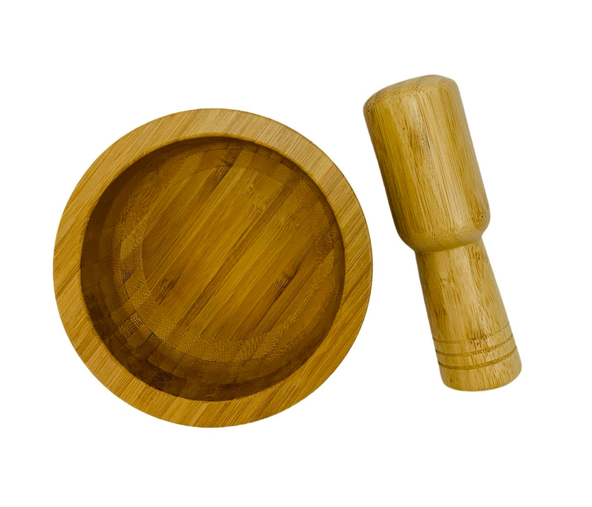 • Q: How do I clean the bamboo mortar and pestle? A: To clean the bamboo mortar and pestle, simply rinse it with warm water and wipe it dry. It does not retain odors or residues.
