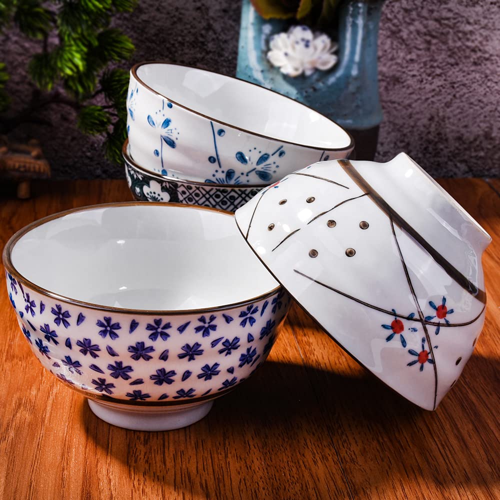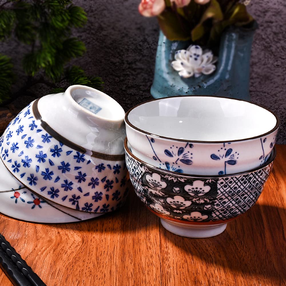 • Q: What is included in the Japanese Ceramic Rice Bowl Set? A: The set includes four unique Japanese ceramic rice bowls, each featuring different hand-painted patterns.