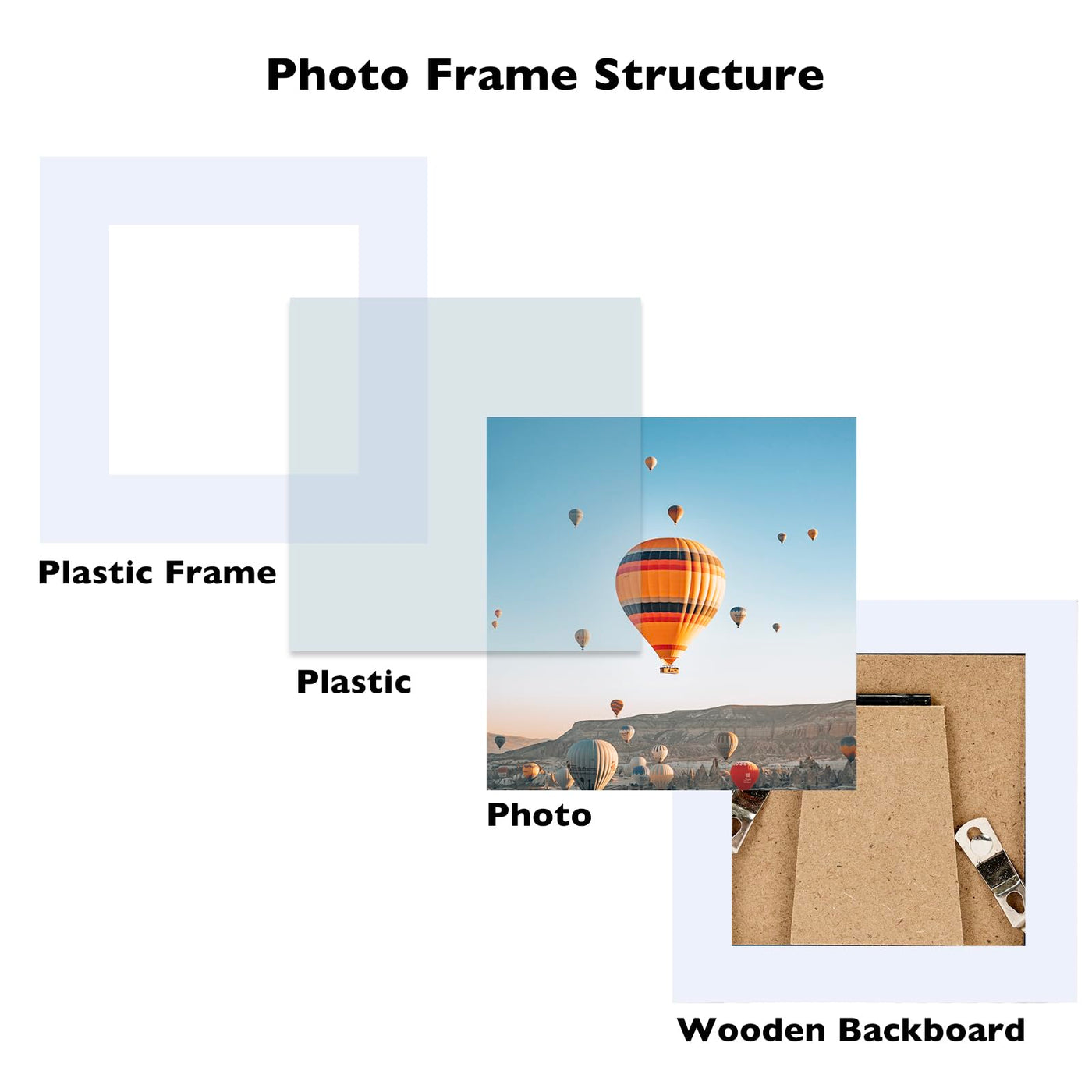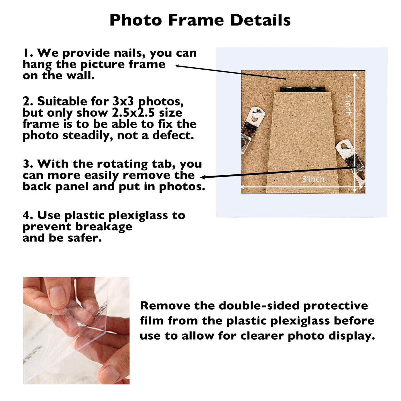 FRAME SIZE: The white picture frame fits 3x3 photos, simple and stylish, the frame opening display will be 0.5 inches smaller than the photo to better hold the photo instead of a defect.