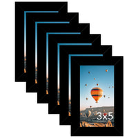 Package Includes: 6 pcs 3x5 black picture frames. FRAME SIZE: The black picture frame fits 3x5 pictures prints artworks and photos, simple and stylish, the frame opening display will be 0.5 inches smaller than the photo to better hold the photo instead of a defect.
