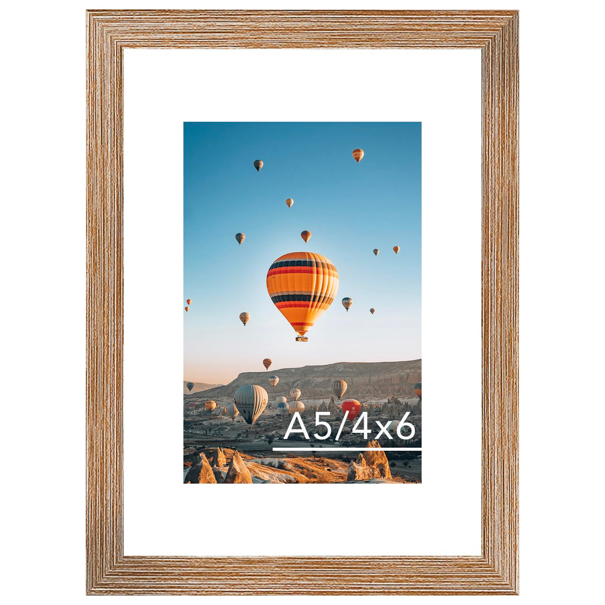 FRAME SIZE: The rustic brown picture frame fits A5 / 5.8x8.3 inch photos prints canvas posters without mat and 4x6 inch pictures with mat, simple and stylish, the frame opening display will be 0.5 inches smaller than the photo to better hold the photo instead of a defect.