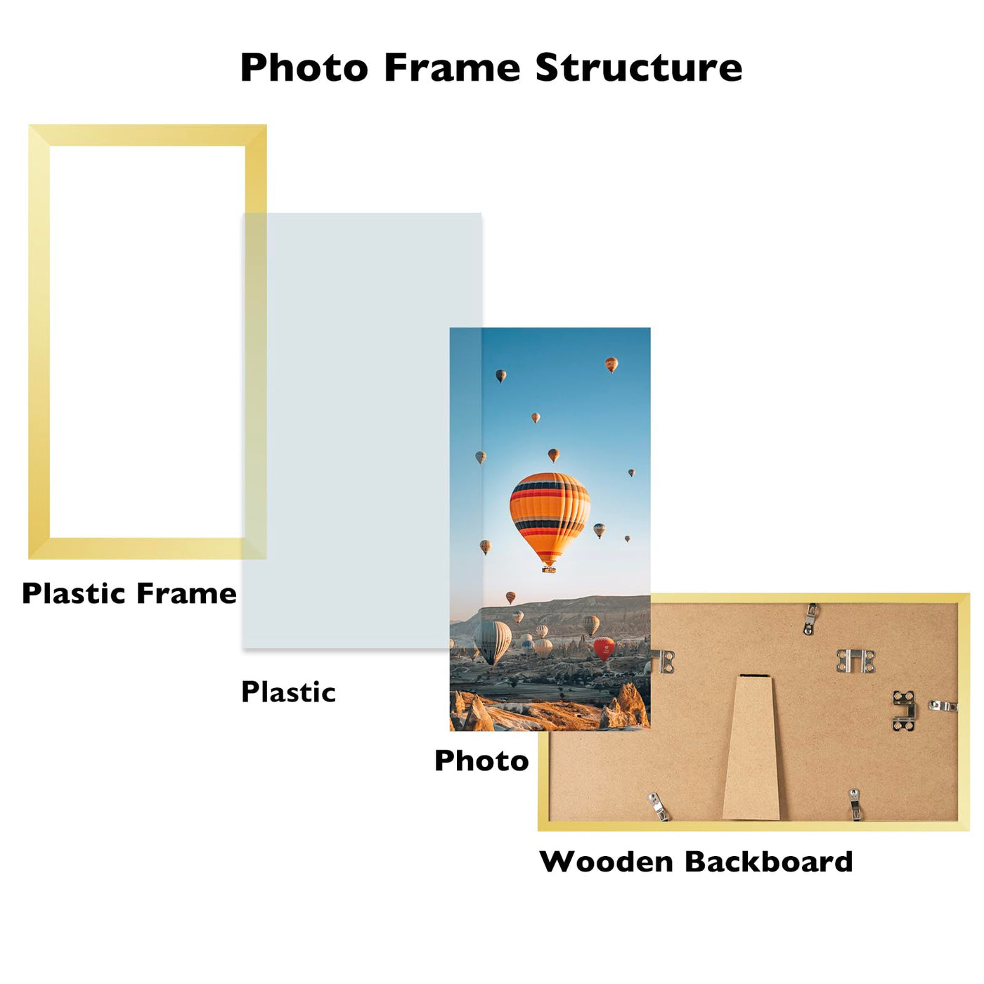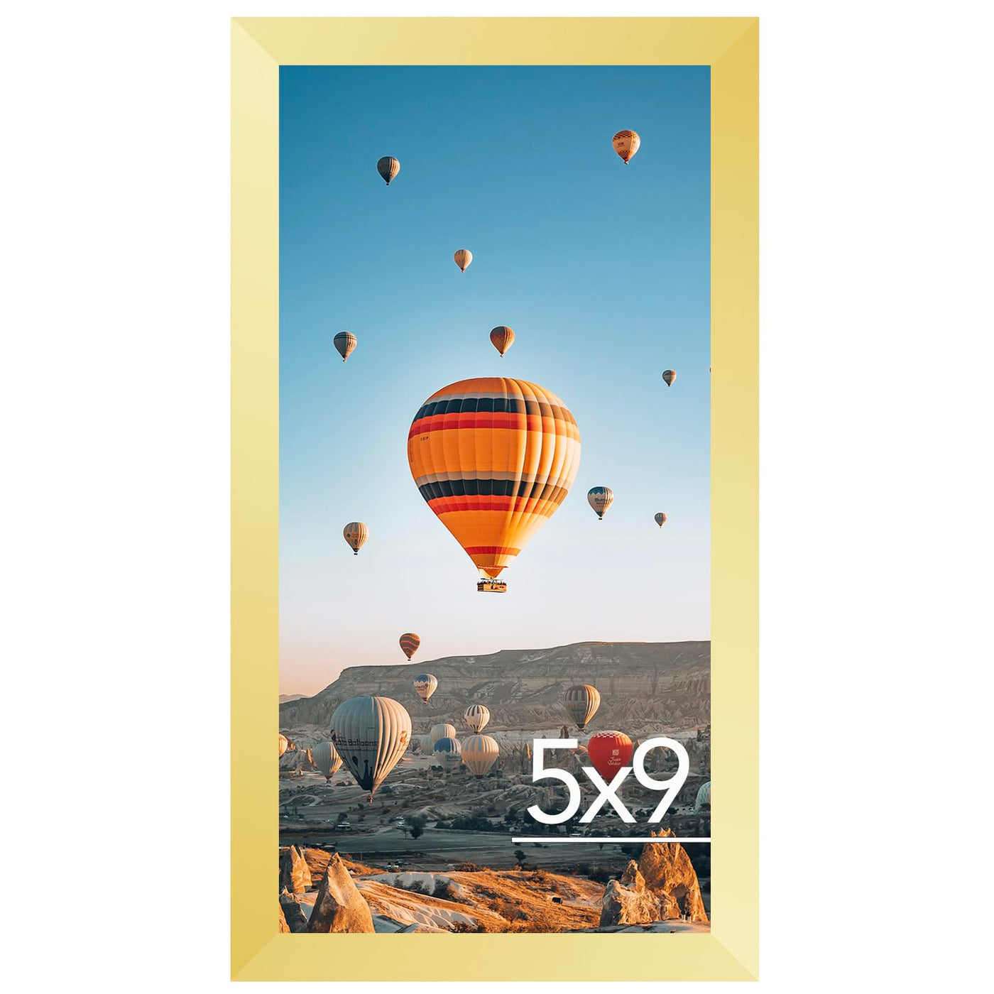 FRAME SIZE: The gold picture frame fits 5x9 photos pictures artworks posters and prints, simple and stylish, the frame opening display will be 0.5 inches smaller than the photo to better hold the photo instead of a defect.