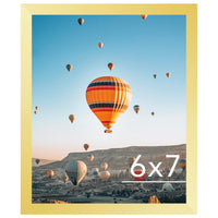 FRAME SIZE: The gold picture frame fits 6x7 photos pictures artworks posters and prints, simple and stylish, the frame opening display will be 0.5 inches smaller than the photo to better hold the photo instead of a defect.