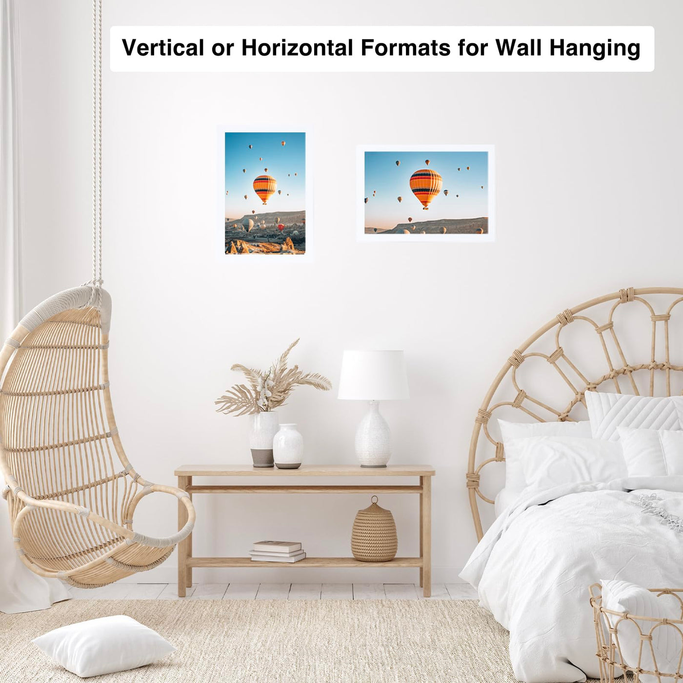 Package Includes: 4 pack 6x8 white picture frames. FRAME SIZE: The white picture frame fits 6x8 photos, simple and stylish, the frame opening display will be 0.5 inches smaller than the photo to better hold the photo instead of a defect.