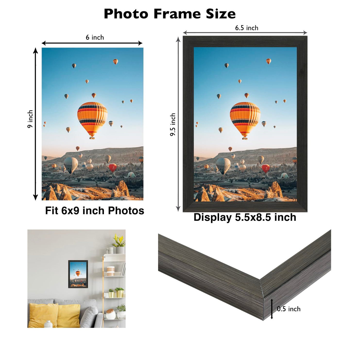 JCJMY 6x9 Picture Frame Silver Gray for Wall Hanging or Tabletop, Wall Mounting Horizontally or Vertically, 6 x 9 Wall Gallery P