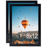 Package Includes: 2 pack 8x12 black picture frames. FRAME SIZE: The black picture frame fits 8x12 photos, simple and stylish, the frame opening display will be 0.5 inches smaller than the photo to better hold the photo instead of a defect.