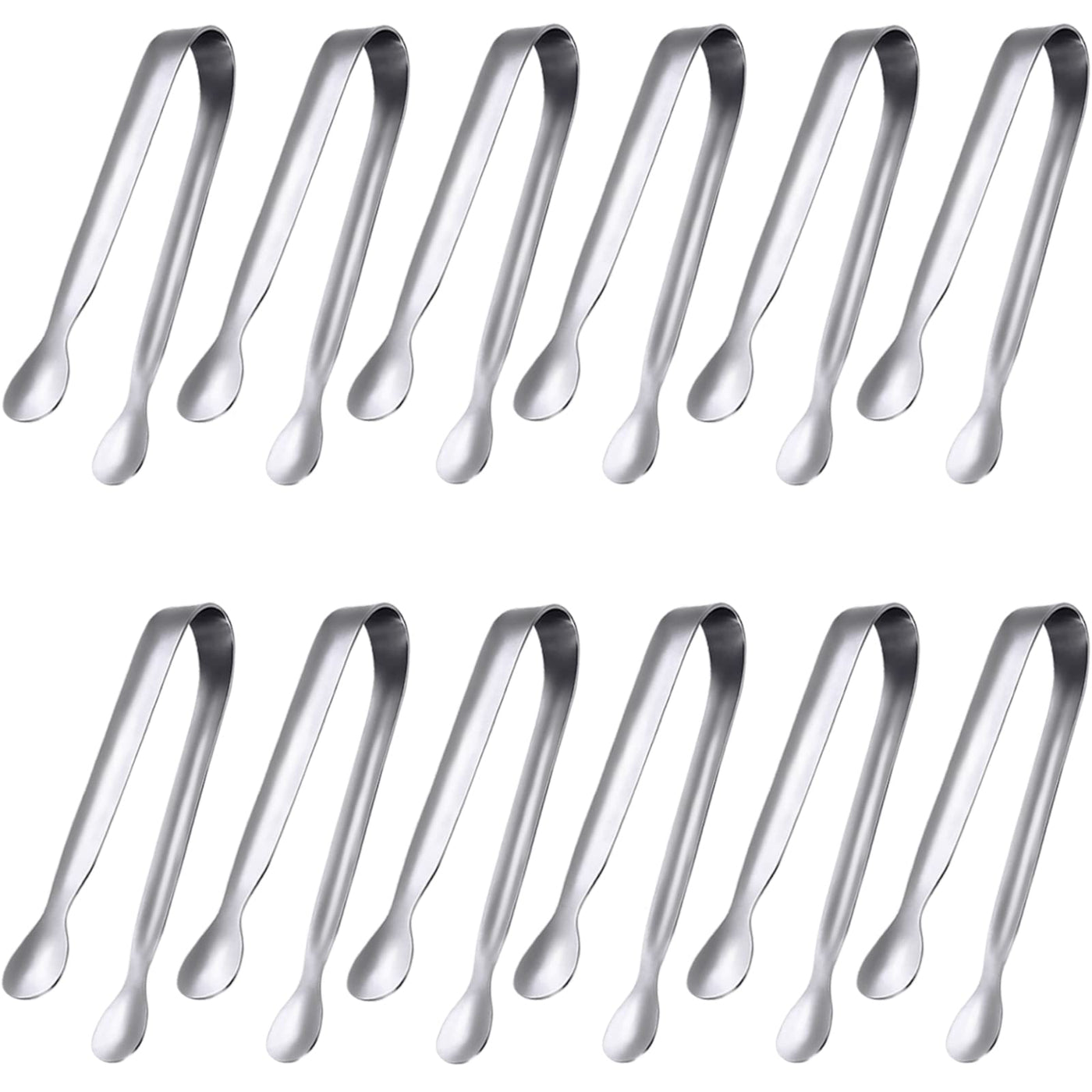 Jcren 12 Pack Serving Tongs, Small Serving Utensils For Catering, Food-Grade 304 Stainless Steel Serving Tongs Appetizer Tongs S