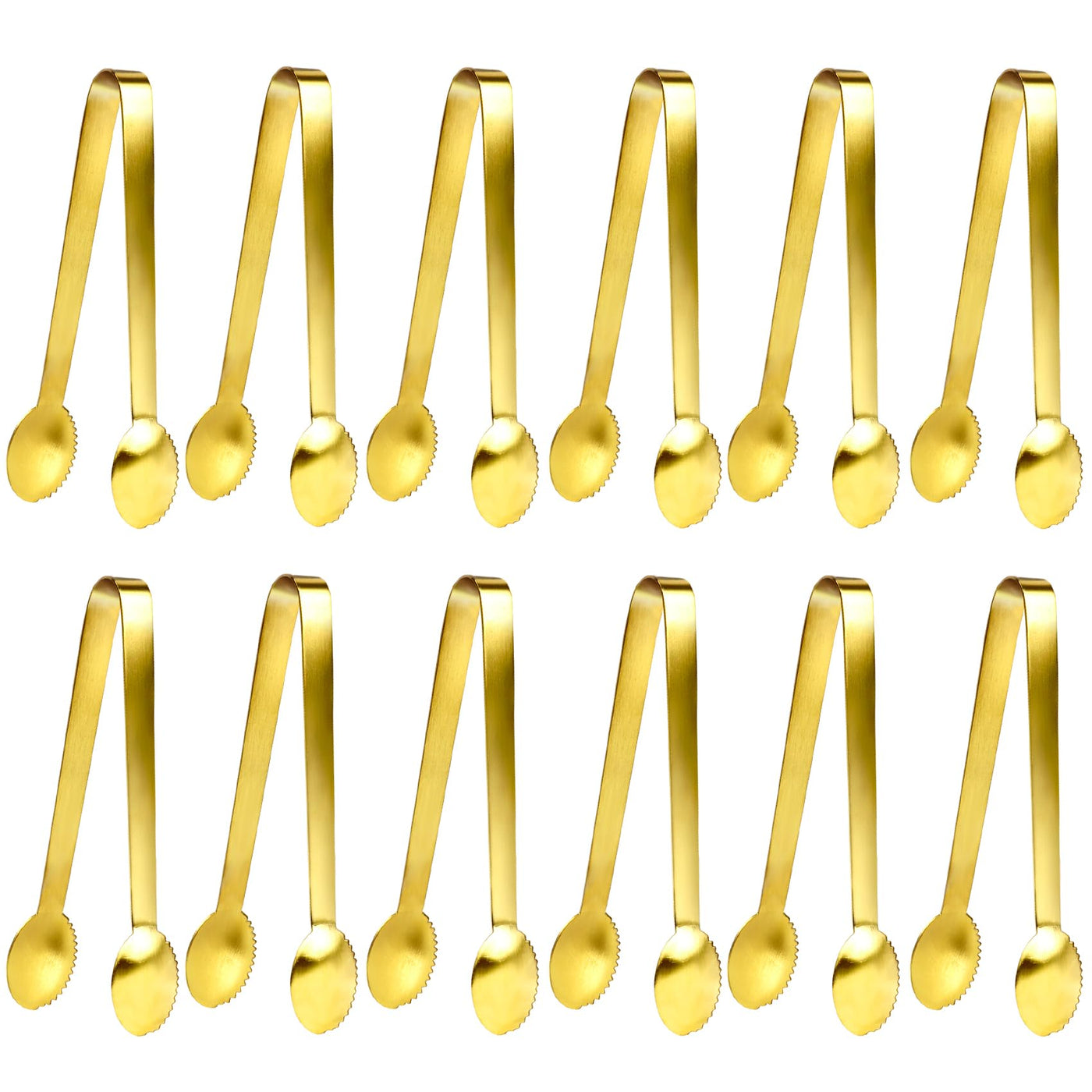 Jcren 12 Pcs Gold Tongs Serving Tongs Stainless Steel Tongs For Serving Food, Sugar Tongs Ice Tongs For Tea Party, Coffee, Appet