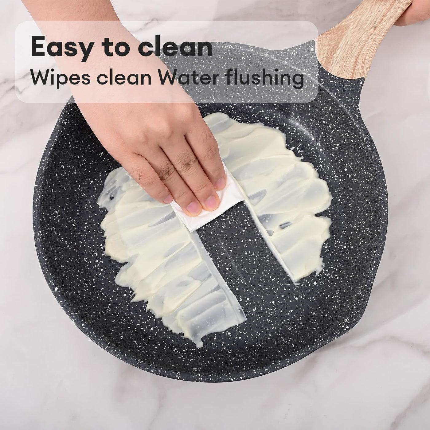 Jeetee Nonstick Pan, Nonstick Stone Frying Pan, Nonstick Omelette Skillet With Soft Touch Handle, 3-Piece Cookware Set Induction
