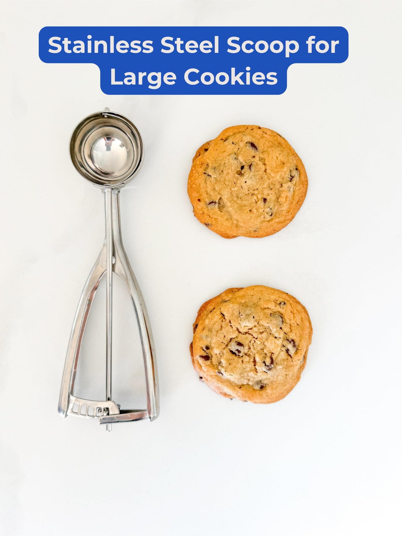 - Q: What sizes of portions can the scoop hold? A: The scoop holds 3 tablespoons, making it perfect for portioning cookie dough for 3.5 inch cookies or for cupcakes in a 12-cup-pan.