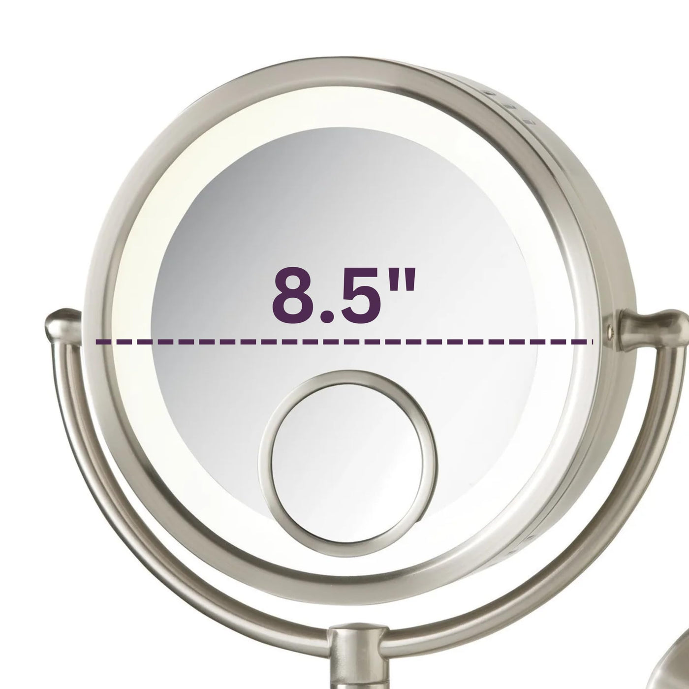 Jerdon Hl8515N Lighted Wall Mount Makeup Mirror With 7X And 15X Magnification, Nickel Finish, 8.5''