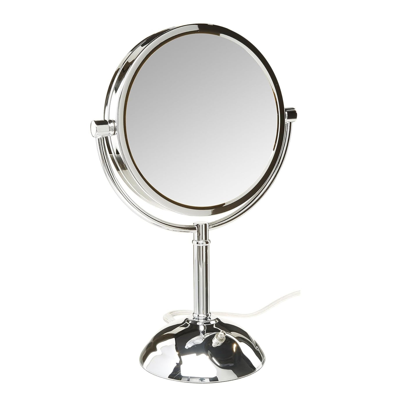 STUNNING VANITY MIRROR - This LED makeup mirror looks stunning on any vanity or bathroom counter. This modern, chrome finish makeup mirror matches a variety of home styles and aesthetics. This desk mirror is great for getting ready, especially for styling hair and applying makeup. | NEW & IMPROVED LIGHTING - These magnifying mirrors now feature LED bulbs with variable light settings. Choose between warm and cool white lighting. Experience flawless makeup application and grooming with bright, long-lasting LED bulbs | MAGNIFICATION OPTIONS - This Jerdon makeup mirror has 2 magnification levels, 1X and 8X. The 8X magnification makes tweezing and grooming easier while the 1X is perfect for basic skincare and makeup application. | GREAT FOR MAKEUP APPLICATION & TWEEZING - This multipurpose tabletop mirror is perfect for getting ready. With multiple light settings and magnification, this vanity mirror makes getting ready easy! | SPECIFICATIONS - This table mirror is perfect for any bathroom. This 8.5-inch diameter mirror features 8X magnification, making it a great choice for shaving, grooming, makeup application and more! This desktop mirror stands 16-inches tall and has a lightweight base for easy mobility. Protected under a 1-year manufacturers warranty