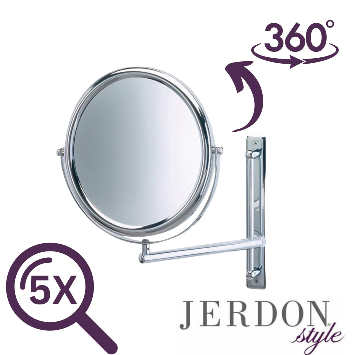 - Q: What are the key features of the Jerdon Two-Sided Wall-Mounted Makeup Mirror? A: Key features include a 9-inch diameter mirror, 1X and 3X magnification options, a 360-degree swivel design, and a polished chrome finish.