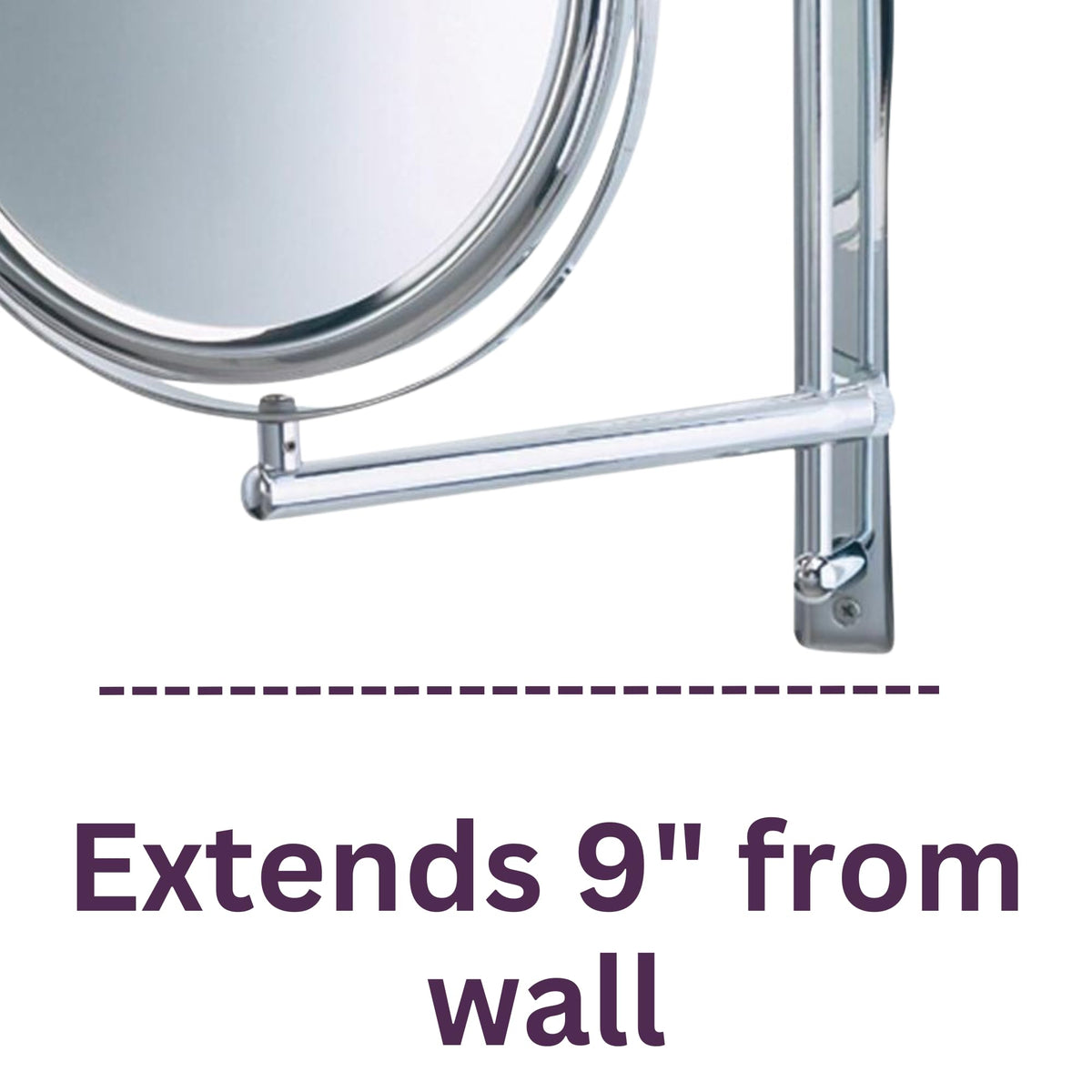 - Q: How far does the mirror extend from the wall? A: This wall-mounted mirror extends 9 inches from the wall, providing flexibility for your grooming and makeup tasks.