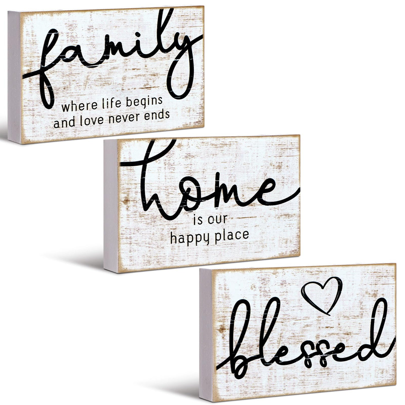 Jetec 3 Pcs Wooden Family Sign Rustic Blessed Home Wall Art Mini Wood Wall Decor Farmhouse Table Shelves Decoration Sign for Bed