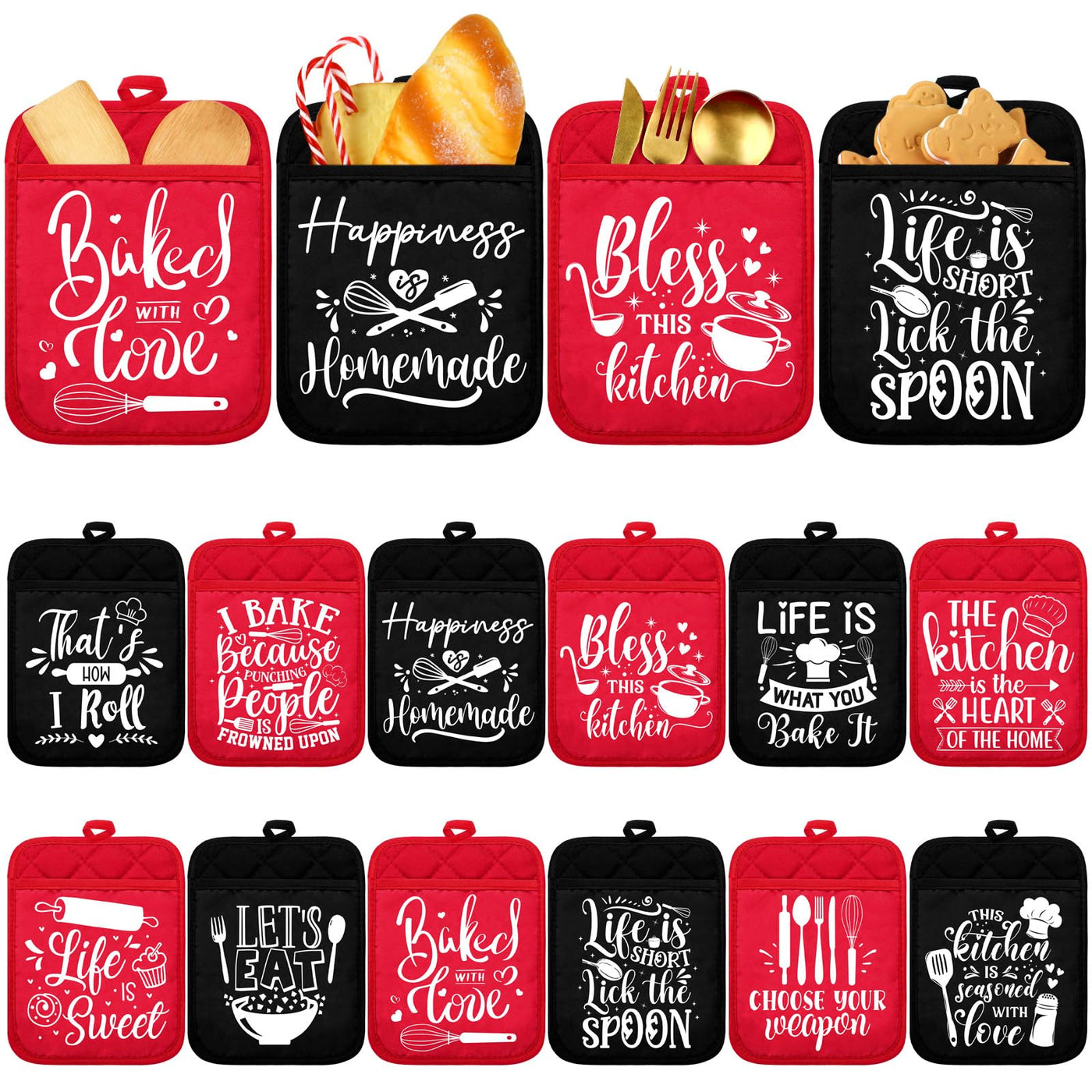 Jingmore 12 Pcs Funny Kitchen Pot Holders with Pocket Teacher Appreciation Gift Baking Potholder for Kitchen Hot Pads Oven Mitts