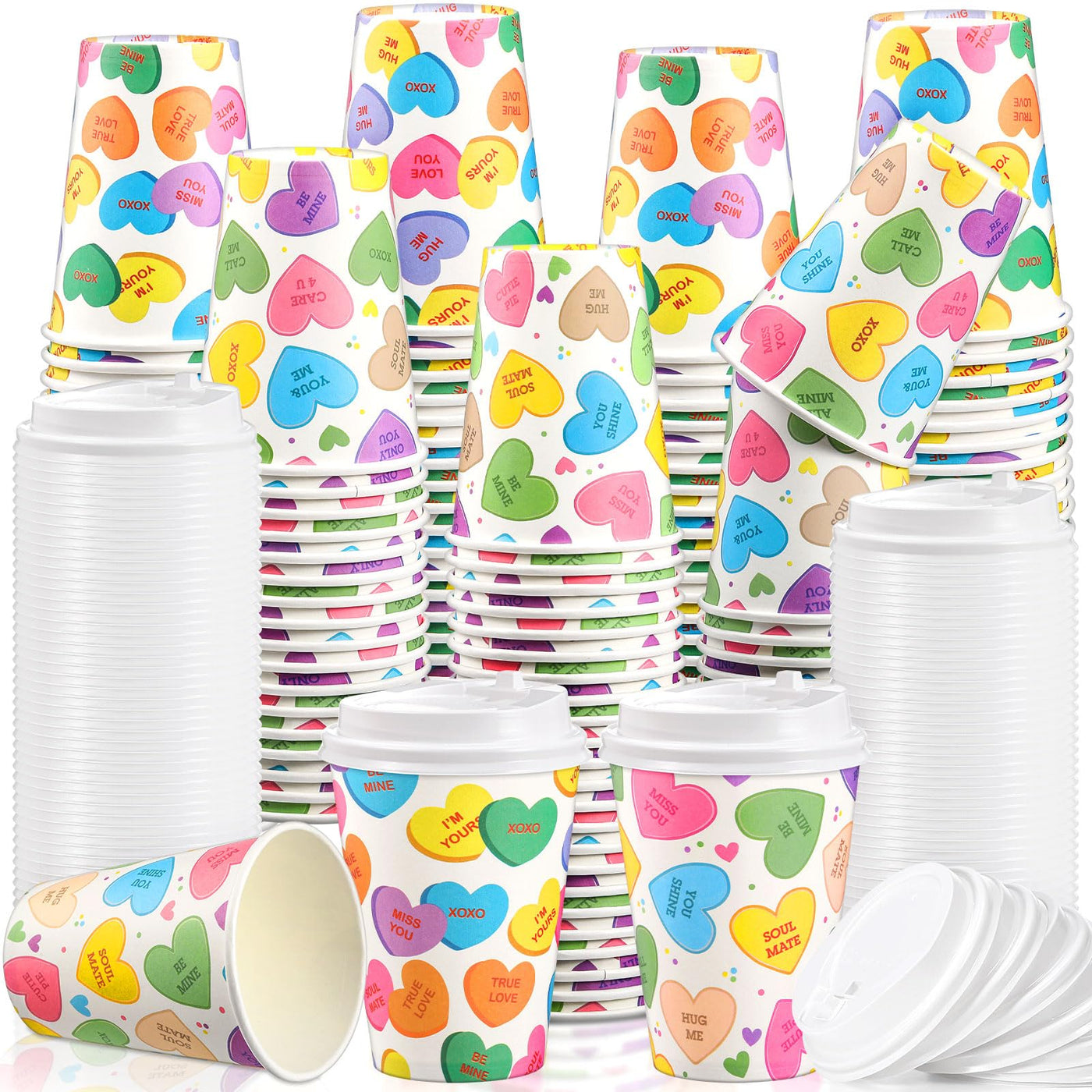 Jingmore 80 Set 12 Oz Valentine'S Day Disposable Coffee Cups With Lids Bulk Love Conversation Heart Paper Cup For Valentines Hot