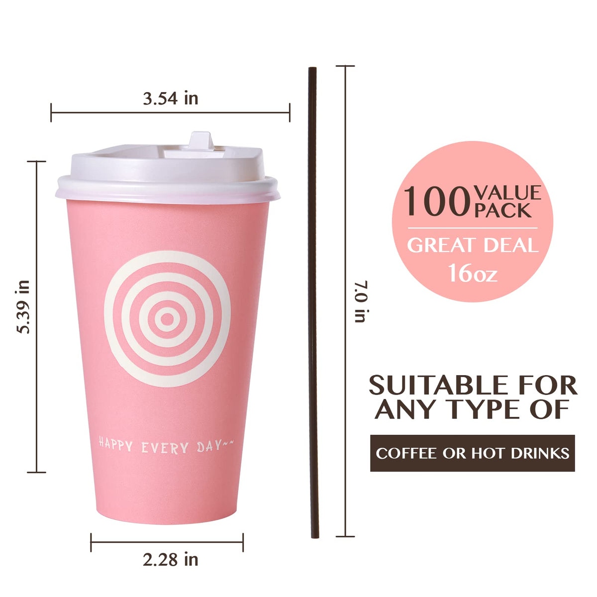 • Q: Do the cups come with lids and stirrers? A: Yes, each pack includes 100 lids and 100 stirrers, ensuring you have everything you need for your beverages.