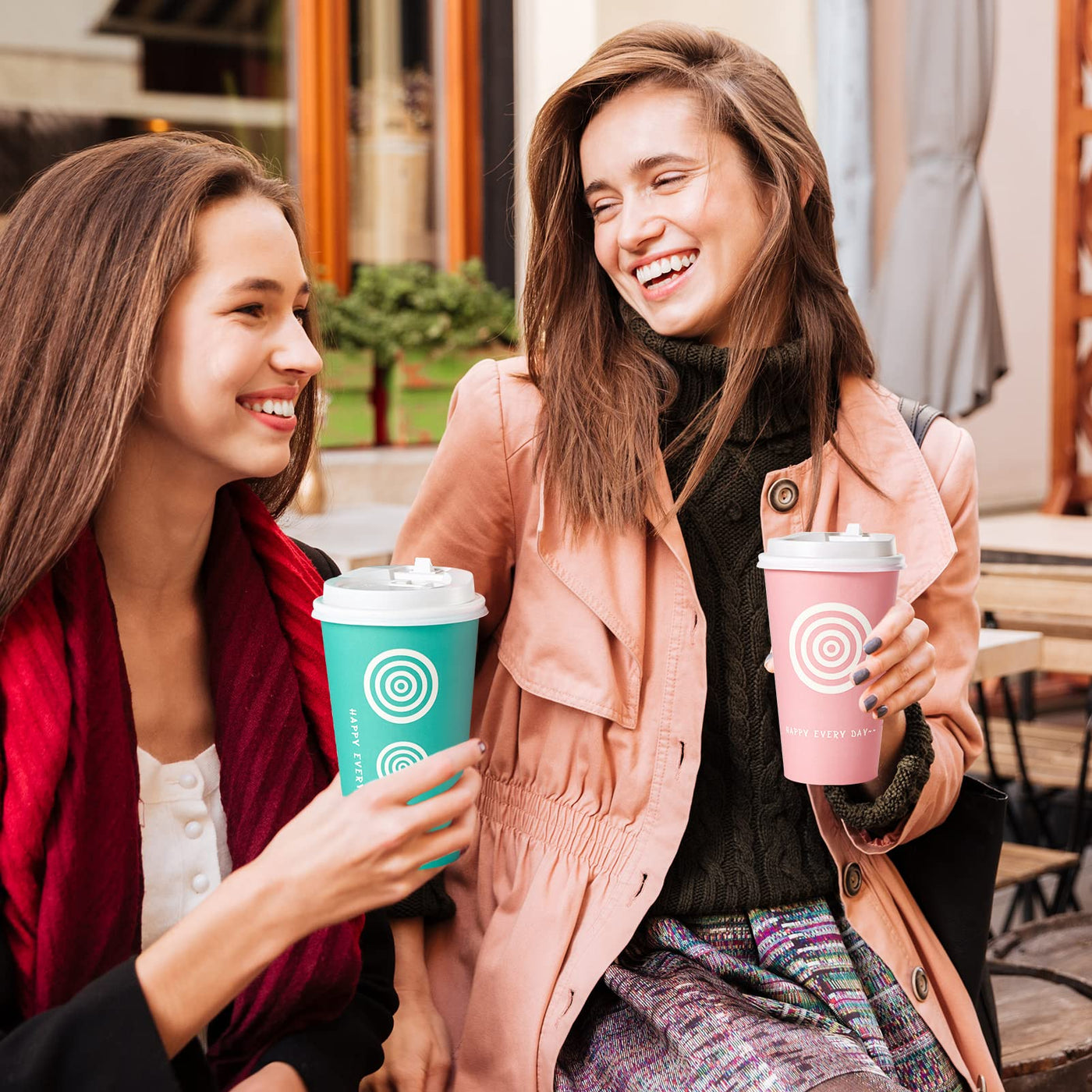 JollyPack 16 oz Paper Cups 100 Pack Disposable Coffee Cups with Lids and Stirrers Hot Paper Cups for Cold/Hot Coffee Juice Tea. To Go Coffee Cups for Home Store and Cafe (Pink and Green)