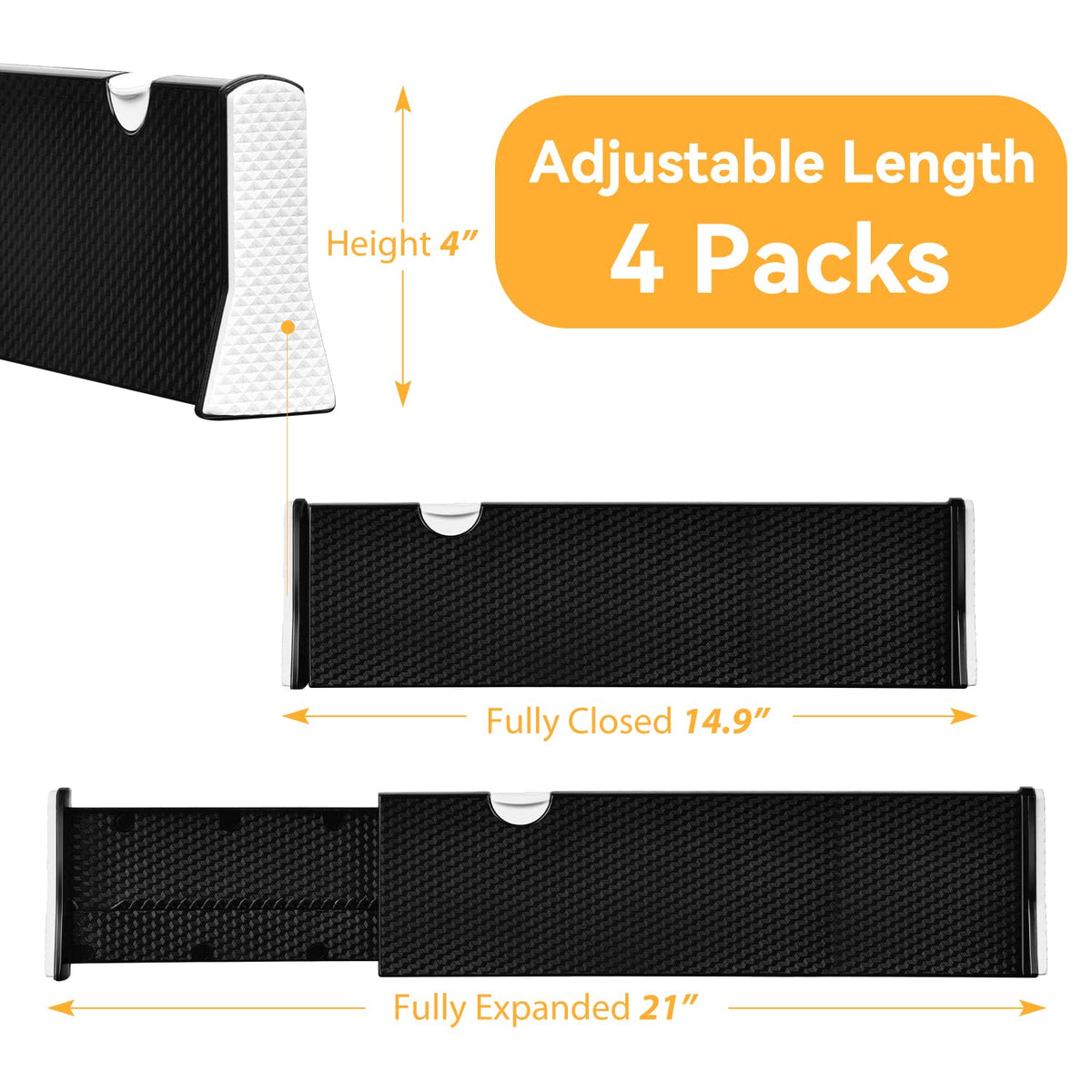 JONYJ Drawer Dividers Organizer 4 Pack, Adjustable Separators 4'' High Expandable from 14.9-21'' for Bedroom, Bathroom, Closet,C
