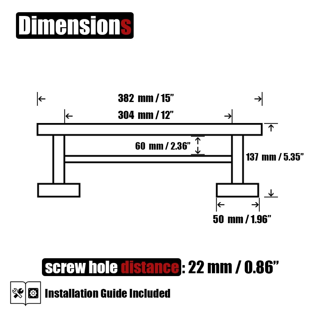 - Q: What is the total length of the towel bar? A: The total length of the towel bar is 15 inches.