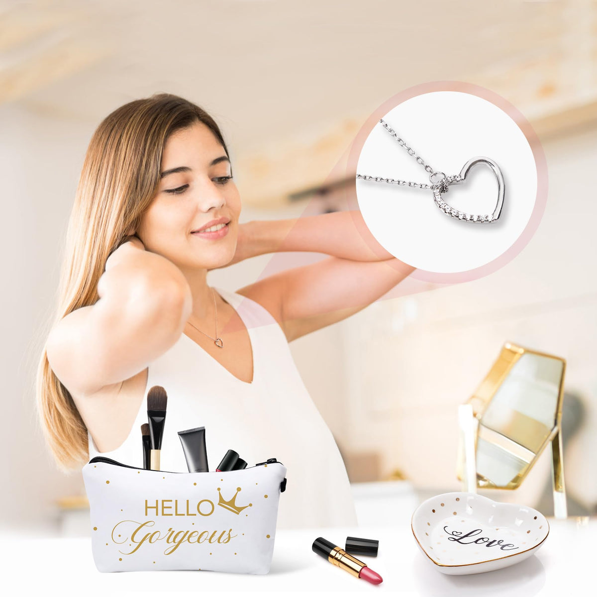- Q: What material is the necklace made of? A: The necklace included in the gift basket is made of sterling silver, offering a quality and elegant accessory.