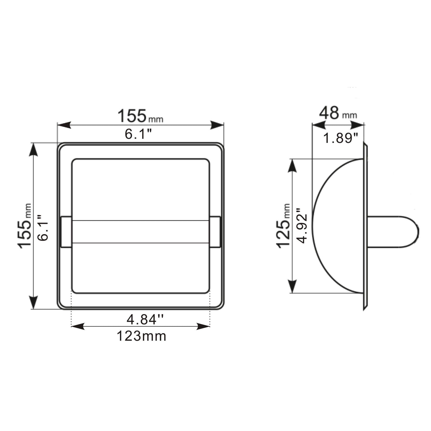 - Q: What are the dimensions of the toilet paper holder? A: The dimensions of the JunSun Recessed Toilet Paper Holder are 6.1 inches by 6.1 inches by 3.58 inches.