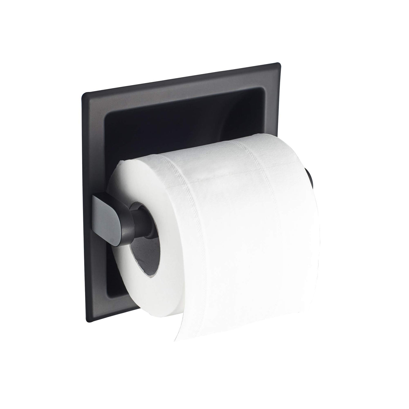 JunSun Recessed Toilet Paper Holder Matte Black Stainless Steel Toilet Paper Roll Holder Tissue Holder Modern Tissue Roll Dispenser 6'' X 6'' Square Jumbo Mega Roll Holder Rear Mounting Bracket Included