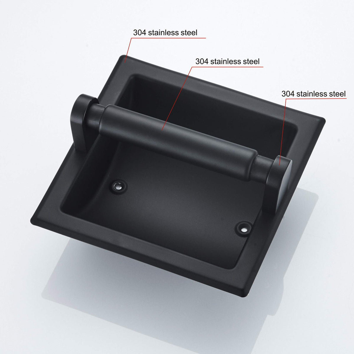 - Q: What type of mounting does this holder use? A: The JunSun Recessed Toilet Paper Holder is designed for wall mounting, providing a space-saving and modern solution for your bathroom.