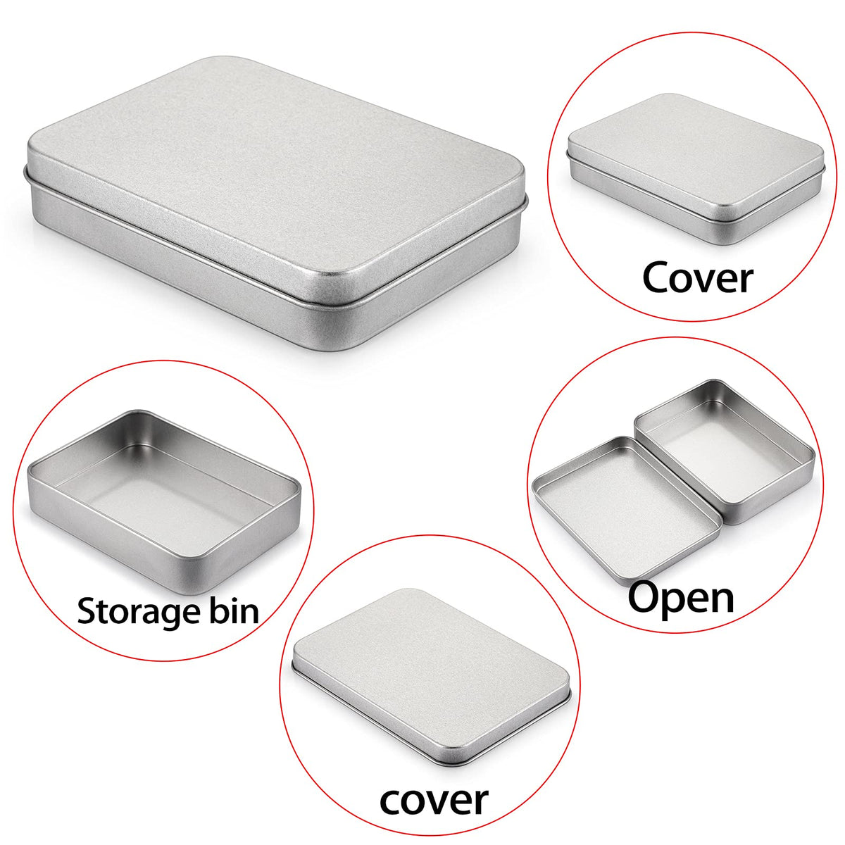 Juxyes Pack Of 12 Rectangular Storage Tins Box With Lid, Metal Silver Empty Tins Box Containers Mini Storage Box Organizer For C