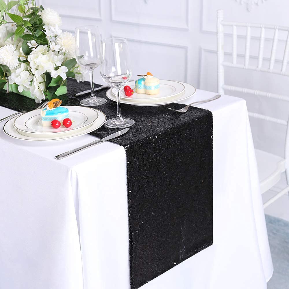 - Q: What are the dimensions of the JYFLZQ Black Sequin Table Runners? A: The JYFLZQ Black Sequin Table Runners measure 12 inches by 72 inches.