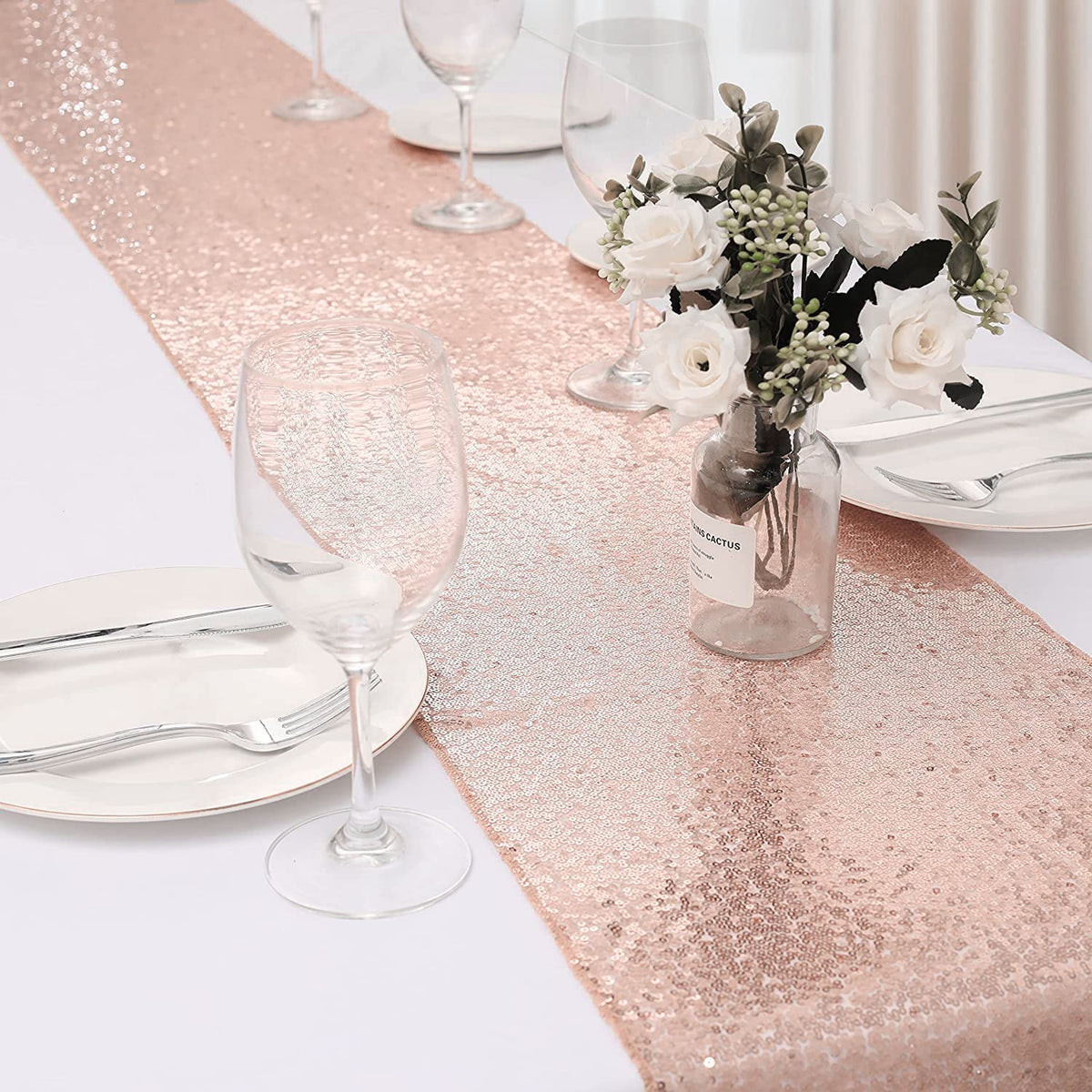 Jyflzq Rose Gold Sequin Table Runner 12 ''X72 '' 10 Packs Glitter Table Runners Sparkly Sequin Runners For Wedding Birthday Part