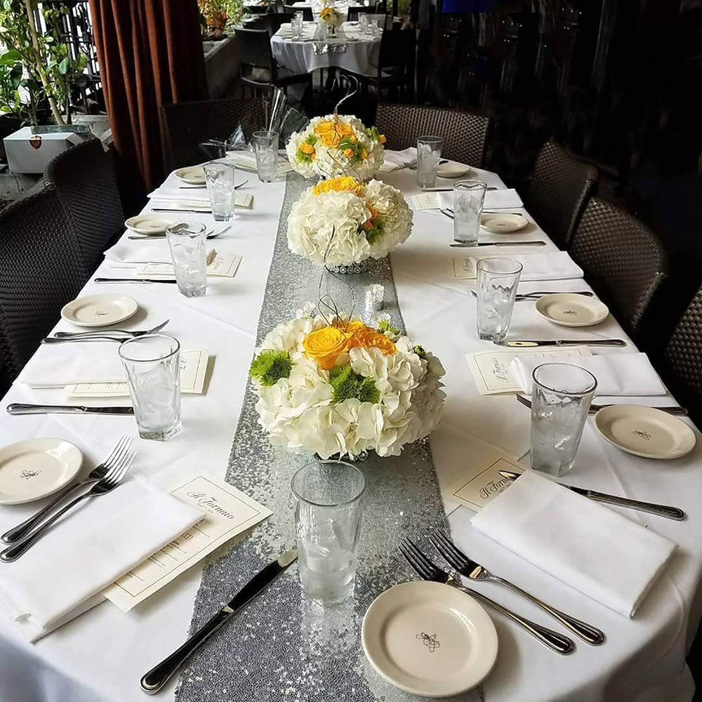 - Q: How do the sequins look under light? A: The table runners are very glittering and elegant in the light, making them a stunning addition to any party setting.