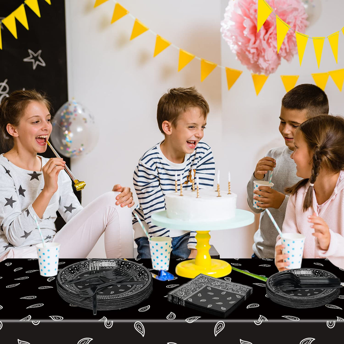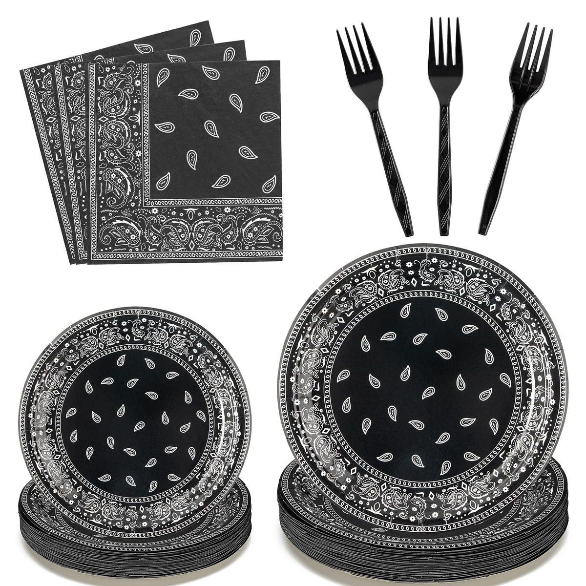 K1Tpde 96Pcs Cholo Bandana Party Tableware Set, Cholo Gangsta Theme Bandana Paper Plates, Western Cowboy Birthday Party Disposab