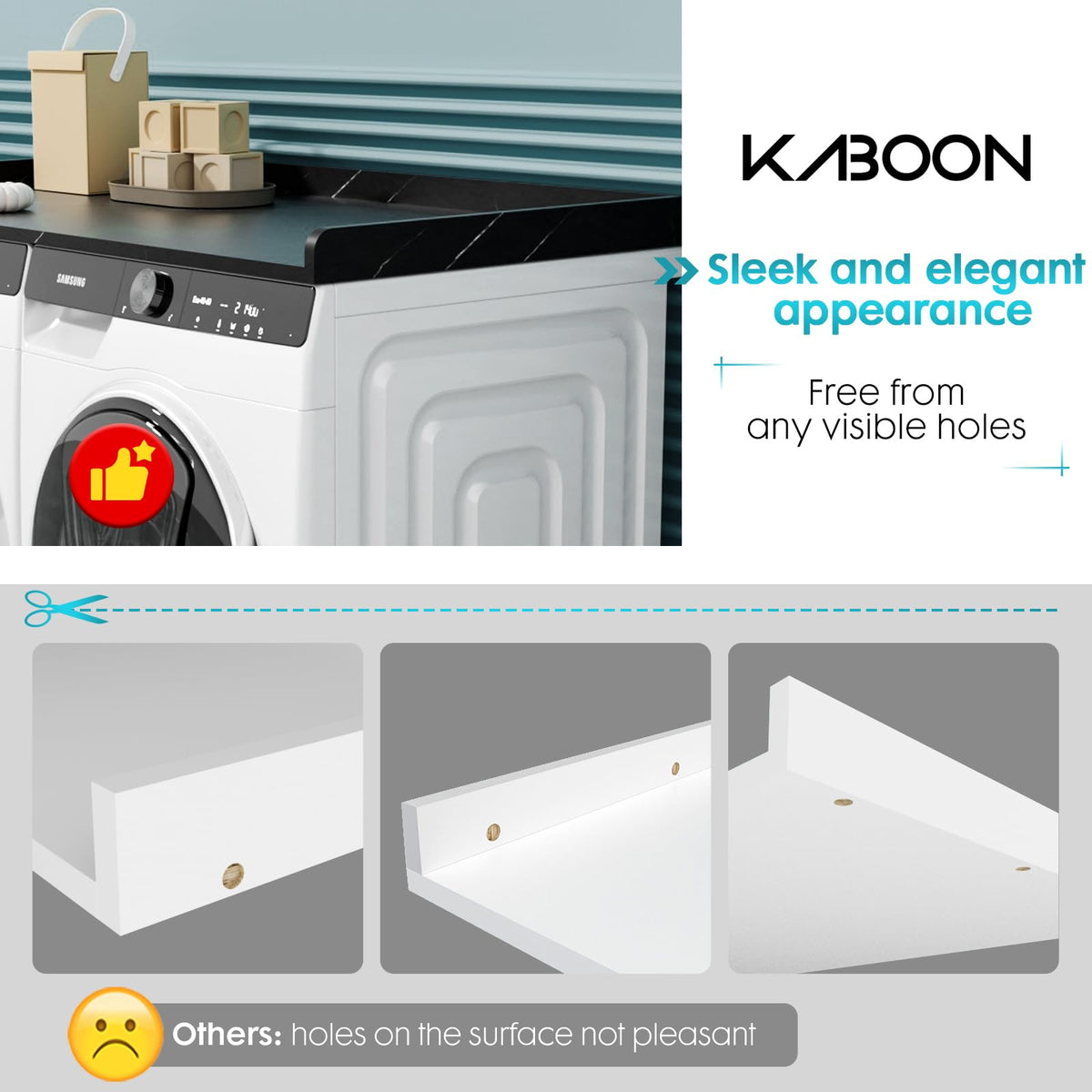 Kaboon Washer Dryer Countertop And Shelves Set, Melamine Countertop With Edge Rails - 27.5'' Depth X 54'' Width Laundry Room Org