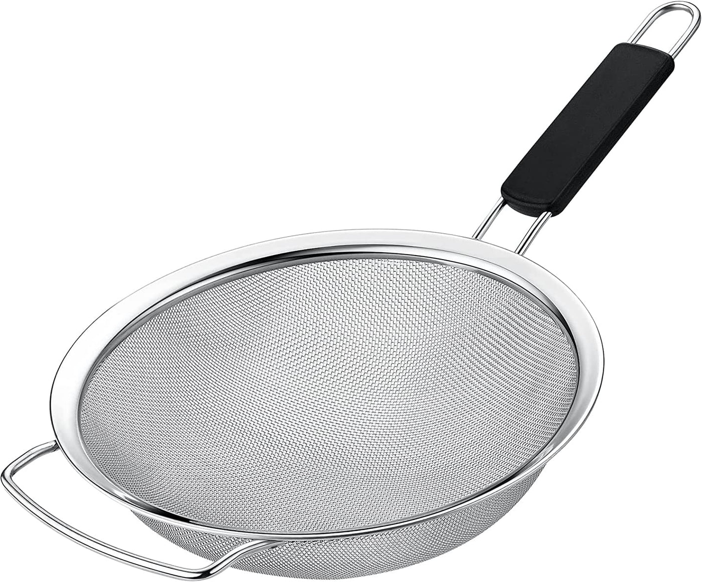 Kafoor 8'' Large Fine Mesh Strainer With Thermo Plastic Rubber Handle - Sieve Fine Mesh Stainless Steel - Ideal To Strain Pasta,