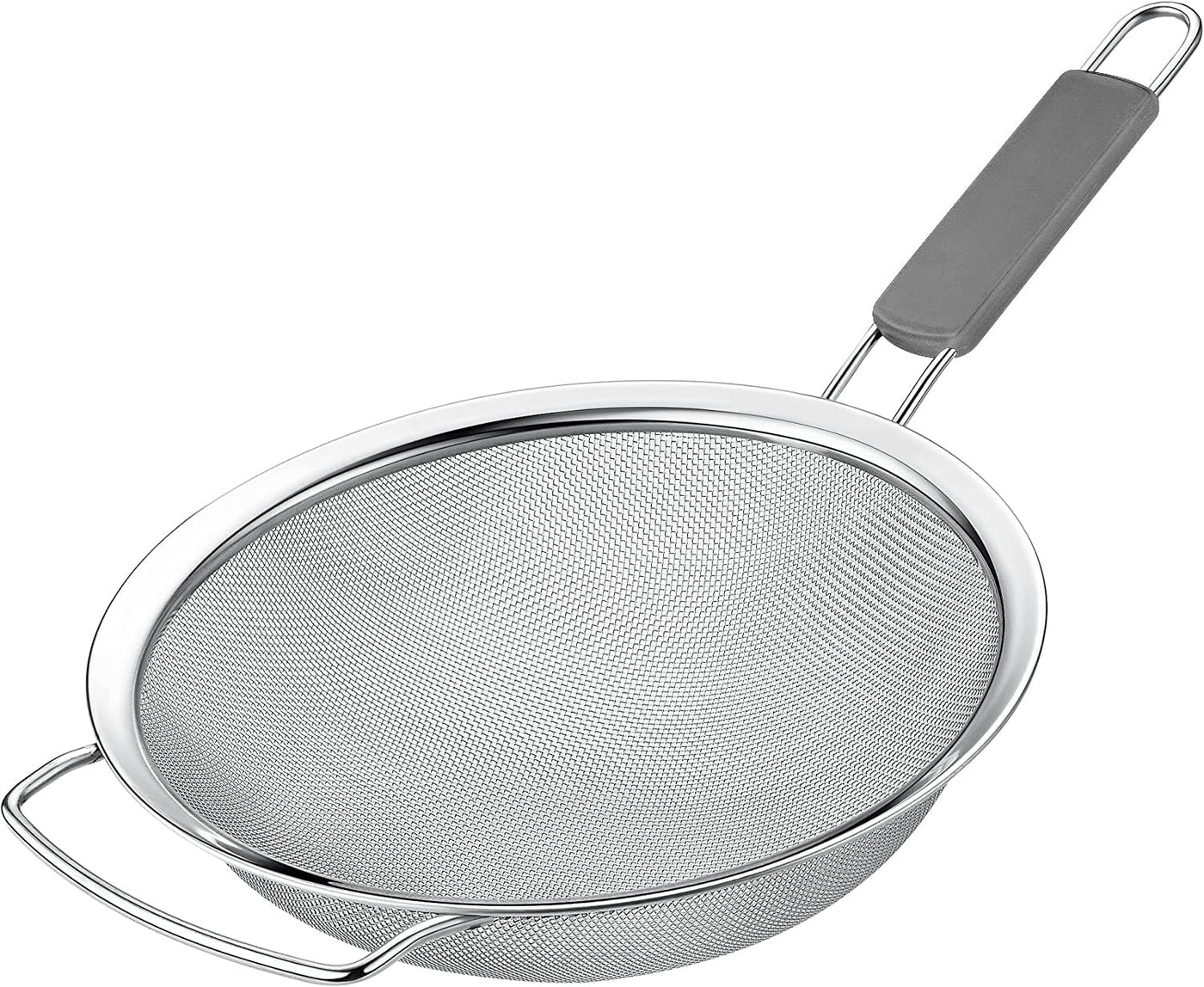 Kafoor 9'' Large Extra Fine Mesh Strainer With Thermo Plastic Rubber Handle - Sieve Fine Mesh Stainless Steel - Ideal To Strain
