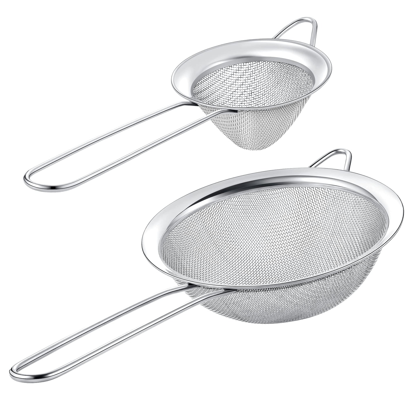 - Q: Can I use these strainers for baking tasks? A: Absolutely! The 5.5-inch strainer is perfect for sifting dry ingredients like flour and cocoa powder, which is essential for baking.