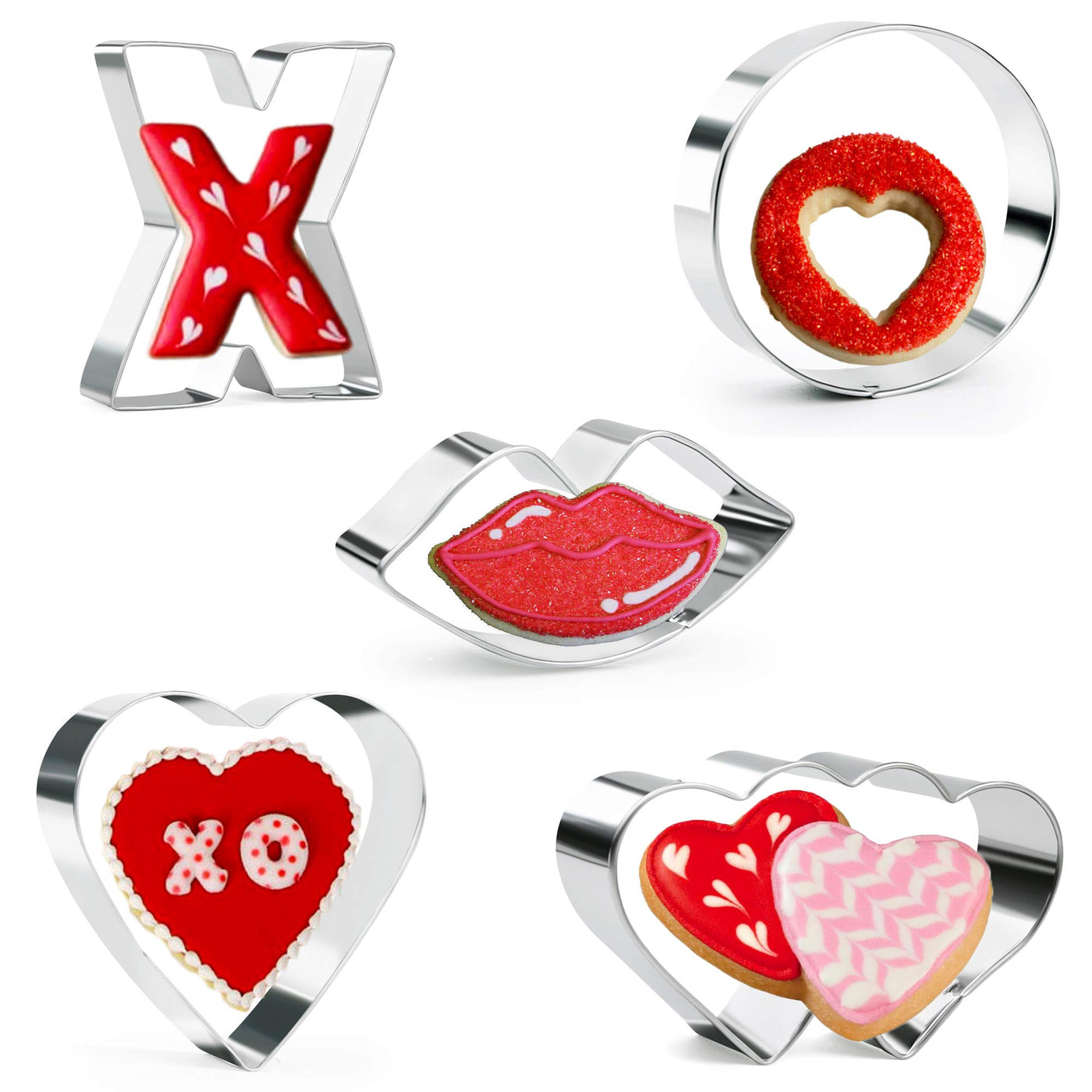 Kaishane Valentine'S Day Cookie Cutter Set-Lips, Double Heart, Heart, Letter X,Letter O-5 Pieces Wedding Valentine Day Fondant P