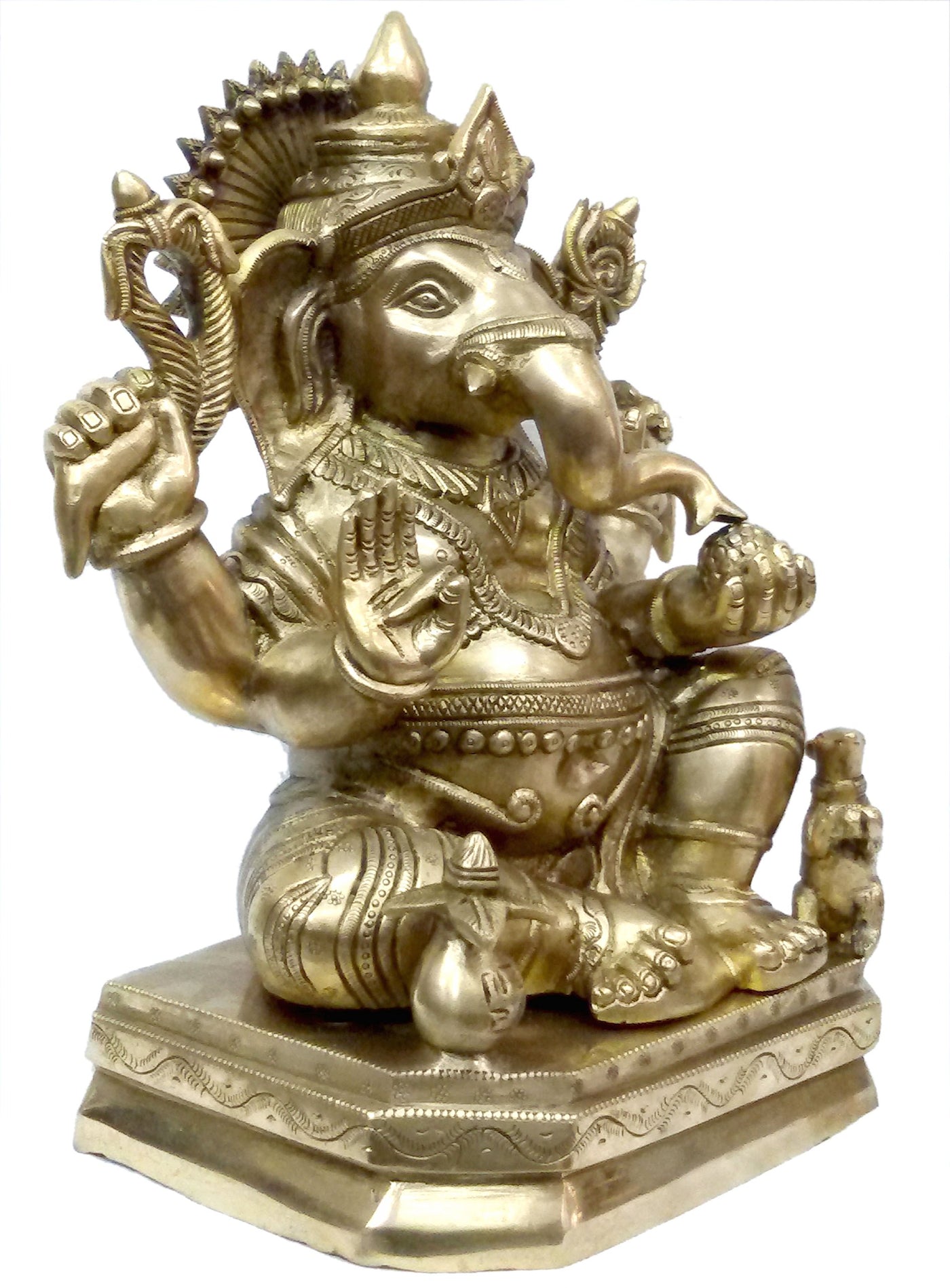 Kalarambh Brass Ganesha/Ganesh/Ganpati Idol Murti Statue For Home Pooja Puja Mandir Decor Collectible Handicraft Art, Yellow, 10 X 6.5 X 12.5 Inch (L X W X H)