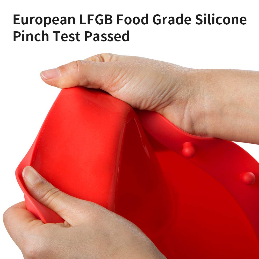 • Q: Is the silicone bowl safe for baking bread? A: Yes, this bread bowl is made from 100% platinum silicone, which is food grade and can withstand high temperatures up to 446 degrees Fahrenheit (230 degrees Celsius), making it safe for baking.