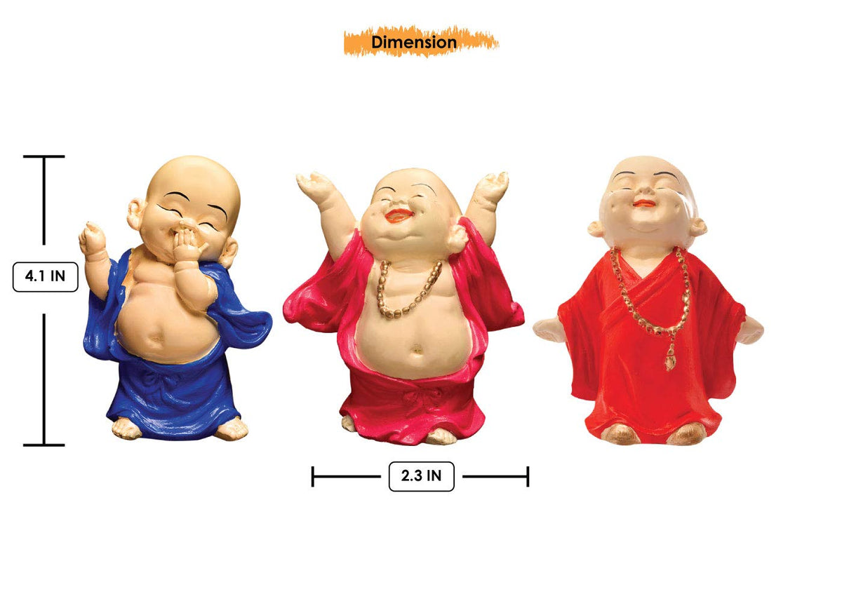 Karigaari India Handcrafted Set of 3 Resine Little Dancing Buddha Monk Sculpture | Buddha Idols for Home Decor