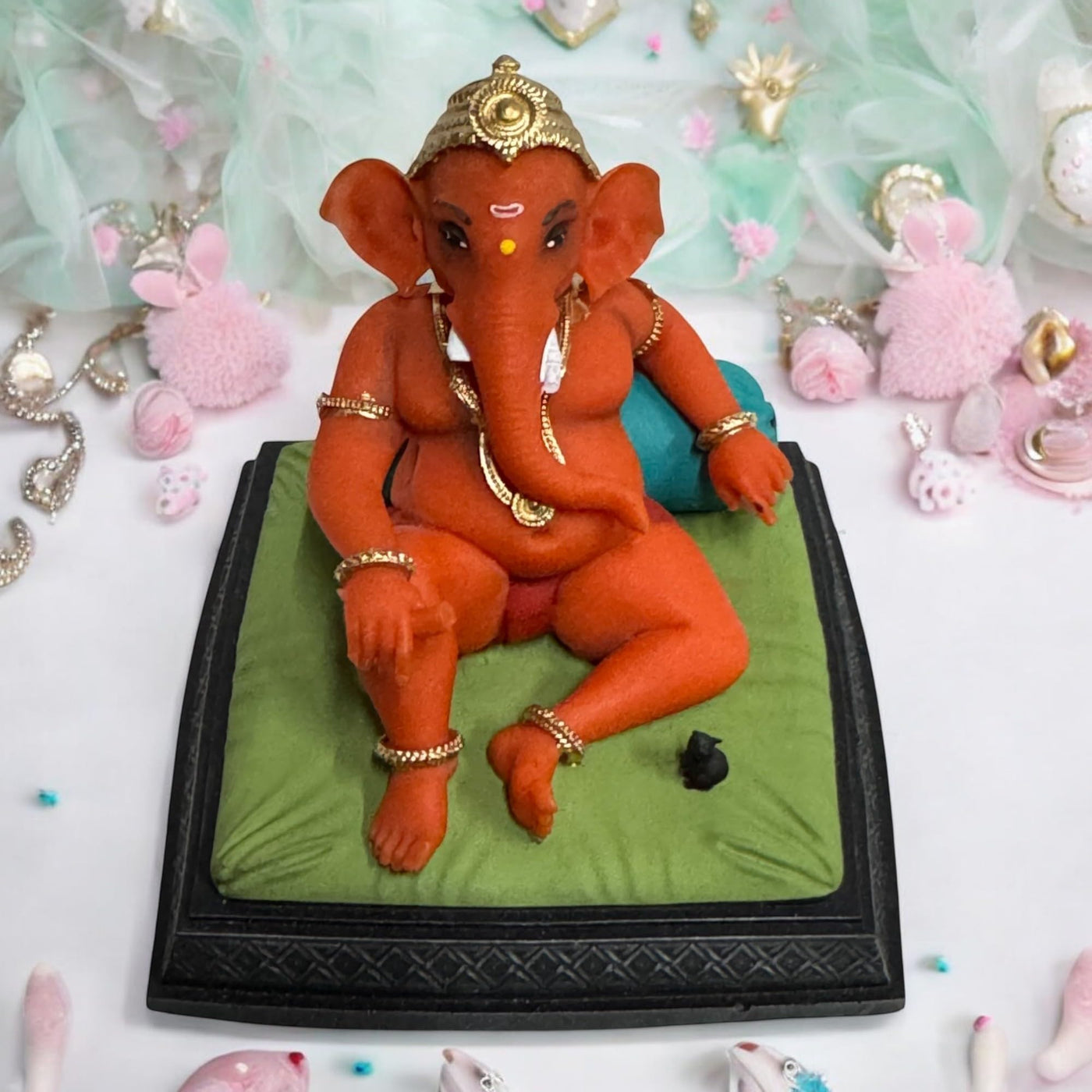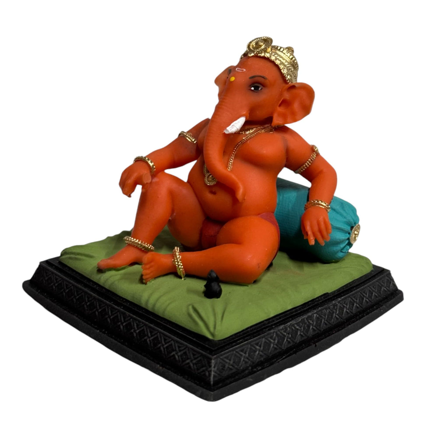 Karighar Kesari Ganesh Idol For Car Dashboard, Home, Puja Ghar, Gifting (9 X 9 X 8 Cm) V0016